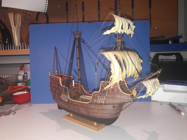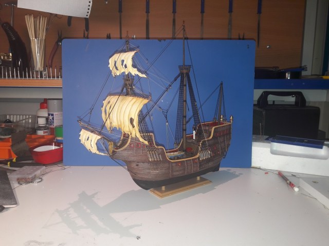 Дочь считает, что сборка застыла на стадии установки мачт. Думаю сюрприз будет удачным.