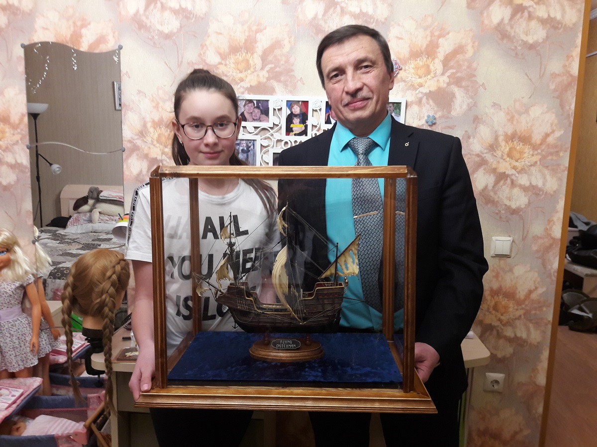 Мои поздравления девочке! Корабль и впрямь получился,- смотрится очень достойно.