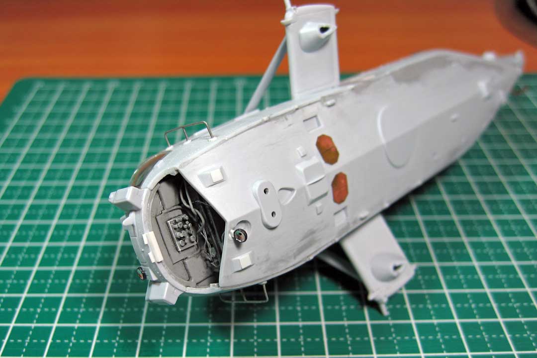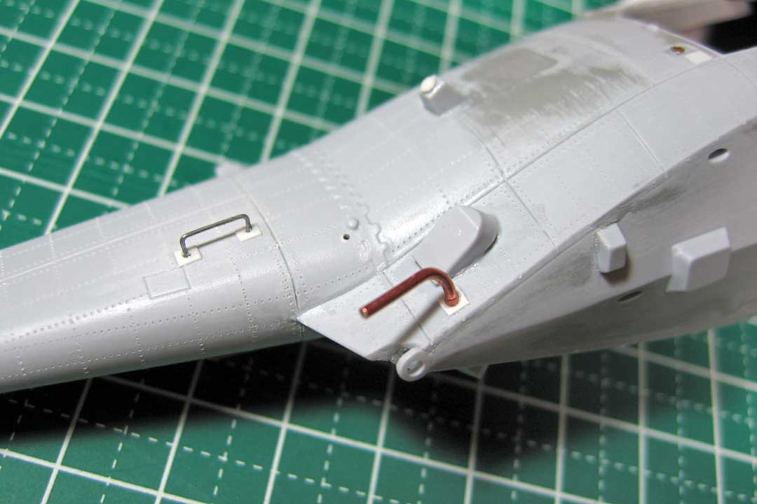 Нанёс клёп. Из проволоки собрал передние поручни.