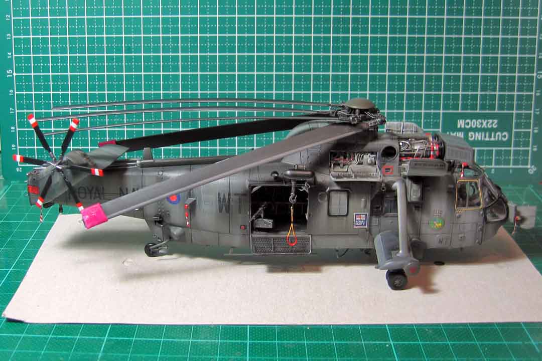 По поводу цвета, Матвей. Цвет именно тот который я хотел. Это не новый блестящий зелёный Си Кинг. Это вояка с Фолклендов. А это 1982 год. 36 лет назад. Это выгоревший зелёный. Потом покажу реальное фото, когда домой приеду. Сейчас просто пишу с телефона. Так что в цвет я попал. прямо такой как надо. По поводу лопастей. Крайние лопасти находятся под углом, но что то очень маловато. Наверное придеться отрезать крайние лопасти и на проволоке уже сажать под большим углом, чтобы они шли вниз прямо по корпусу. Это да! Хорошо, что заметил. А вот крепления для лопастей я сделал и про это написал в посте. Просто я их приклею в самом конце, когда всё остальное окончательно подобью.