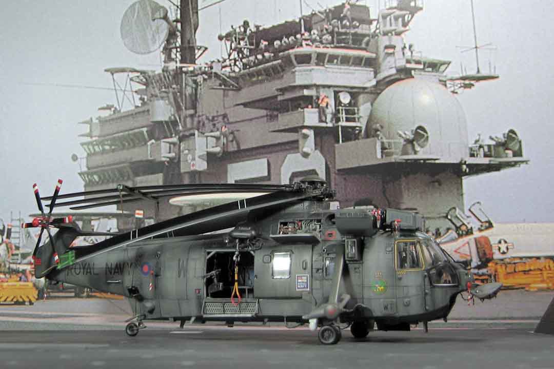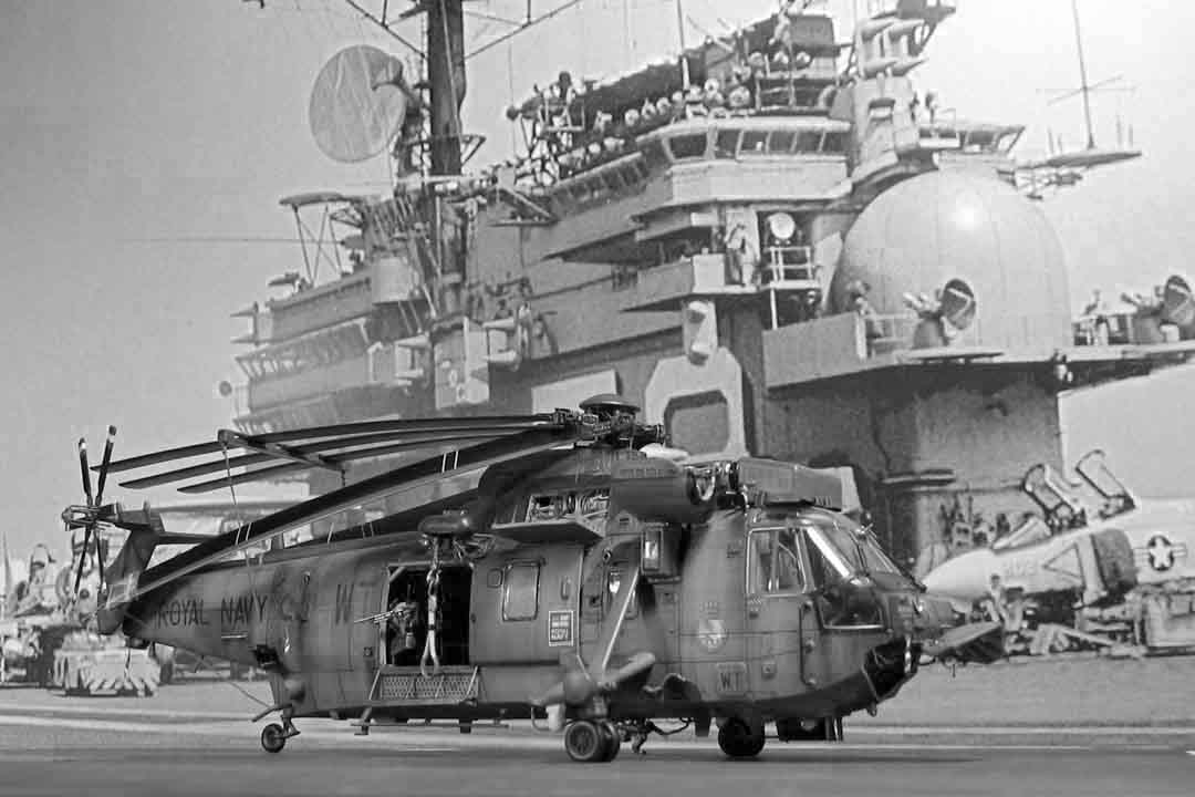 Только судя по фону - британский Си-Кинг оказался с дружеским визитом на американском авианосце.