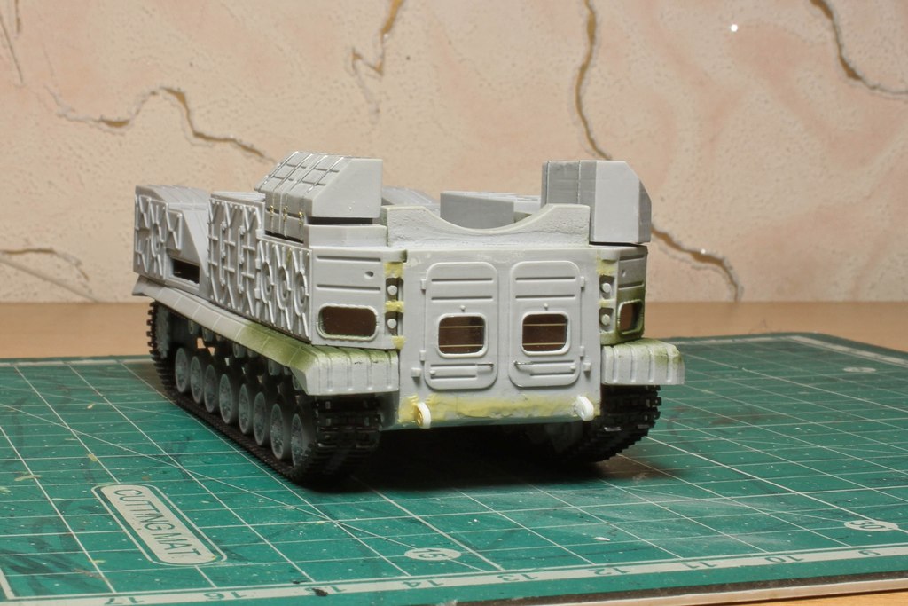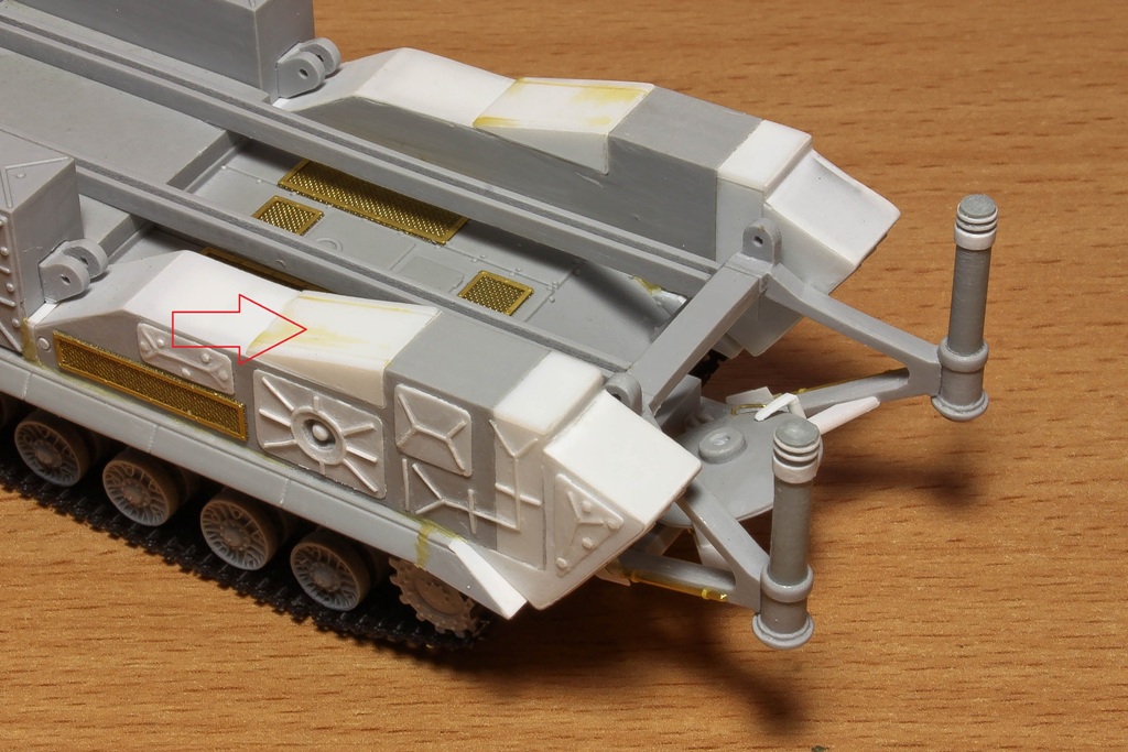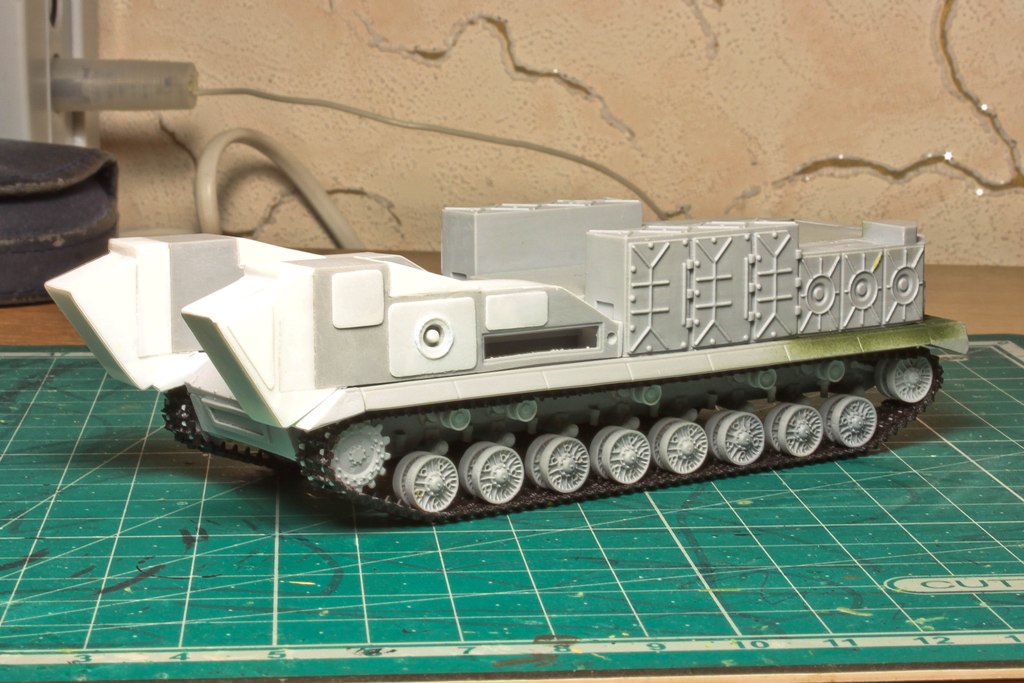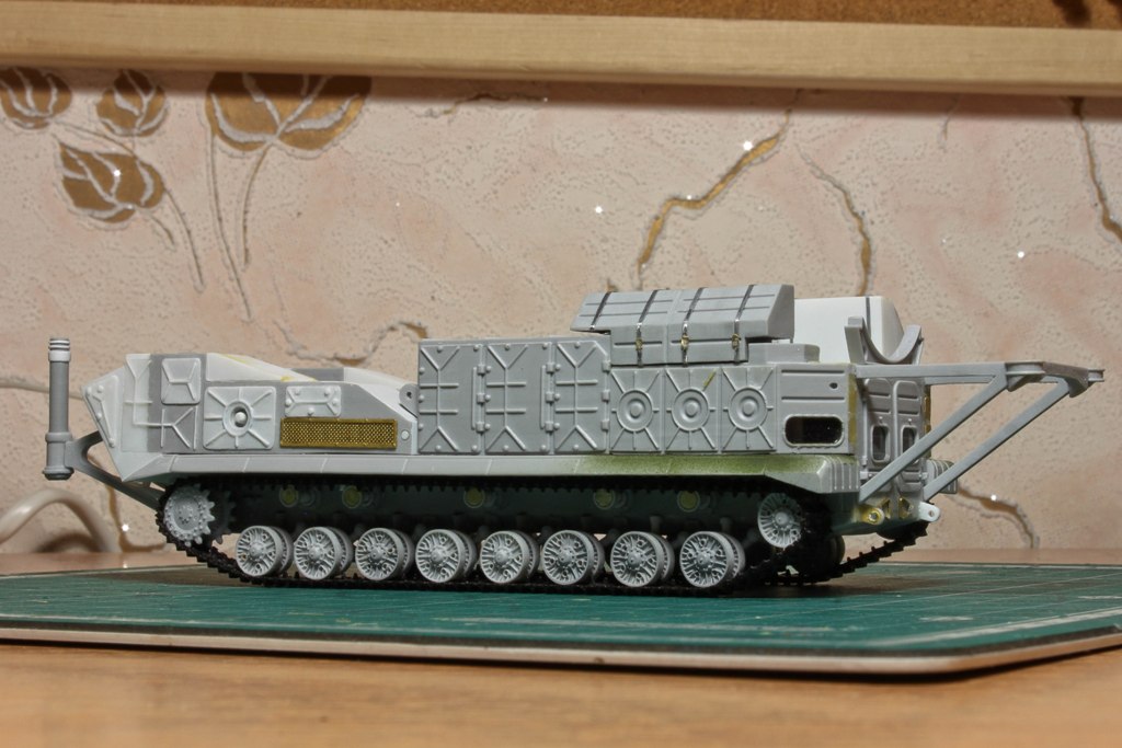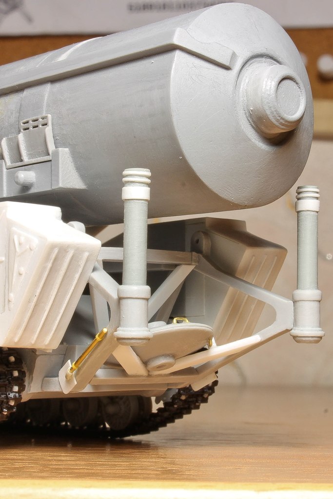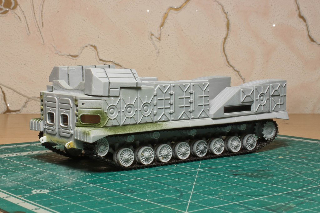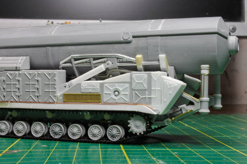 По фото "в профиль" вижу, что ходовую придется еще редактировать. У модели расстояние между 2-м и 3-м рычагом больше, чем другие. В итоге, 2-й и 3-й каток разделяет бОльшее расстояние, чем все остальные катки. Так же, судя по фото с парада, звездочка должны быть ближе к каткам...