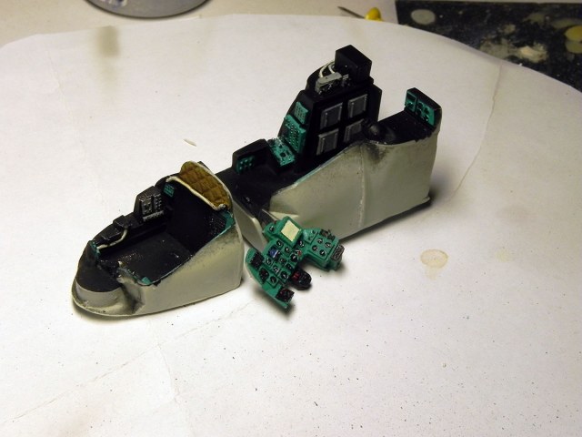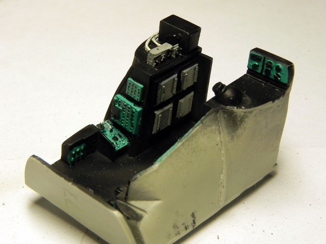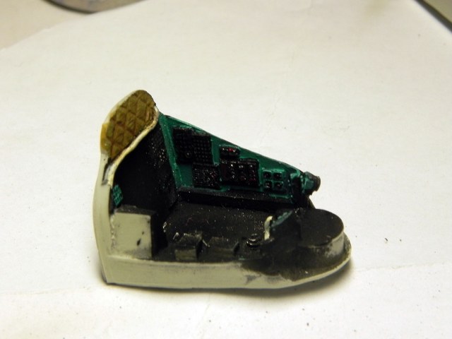 Думаю, как делать приборную доску. Пока что идея - отпечатать чертёж на декальной бумаге, выбивать пробойниками и переводить в соответствующие ниши на смоляной приборке. Думаю, для закрытой кабины будет вполне достаточно.