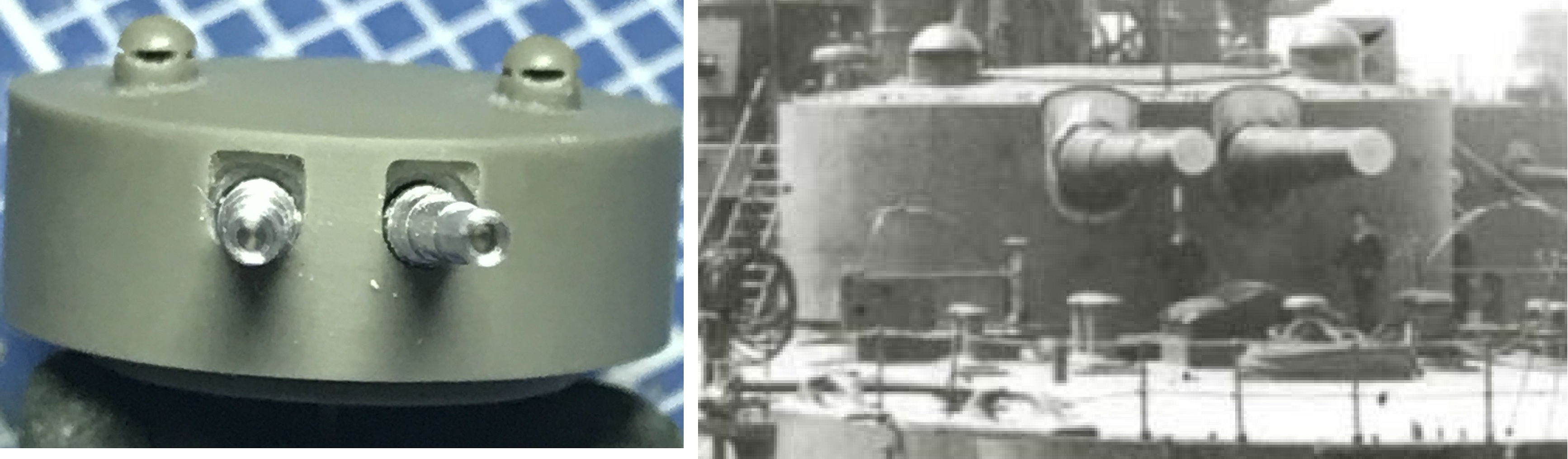 Решил подсобрать башни броненосца, да не тут то было! Достал из загашника уже знакомую Токарку от МастерМоделс, что я обычно ставлю и начал примерять стволы ГК к башням. Попутно отрезал от литника оригинальные смоляные полукруглые стволы и тоже начал примереть. И вот раз и обнаружилась проблема! Думаю почему родные смоляные стволы такие огромные, а Токарка Катя то вся худая? Кто прав?