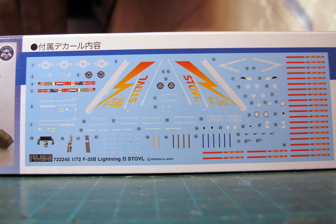 фото новой модели F-35B от HASIGAWA со снимками содержимого коробки.