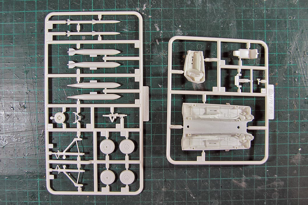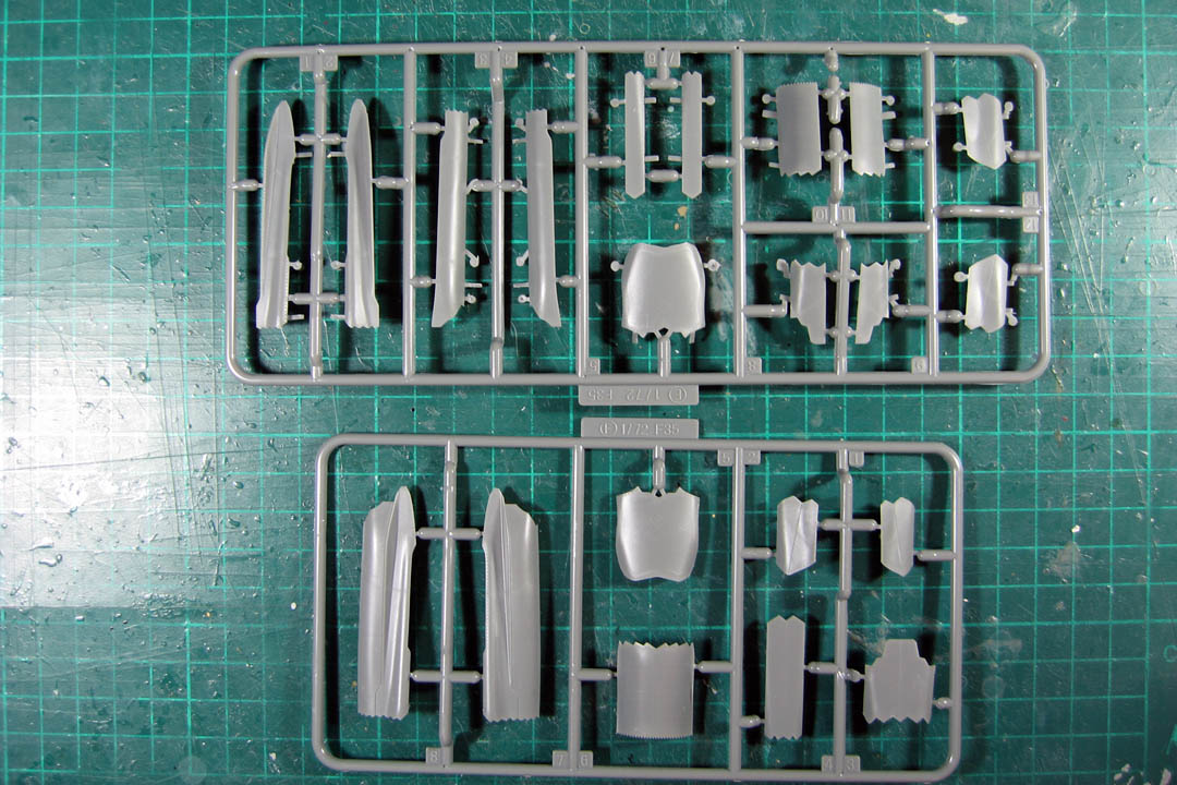 Содержимое коробок абсолютно одинаковое, за исключением декалей и носовой трубки ПВД у