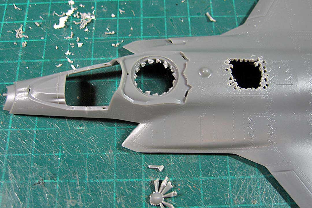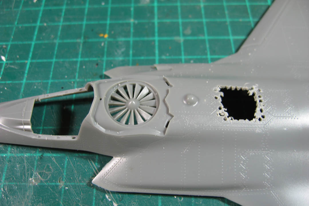 из пластика вырезал вставку в нишу дополнительного воздухозаборника.