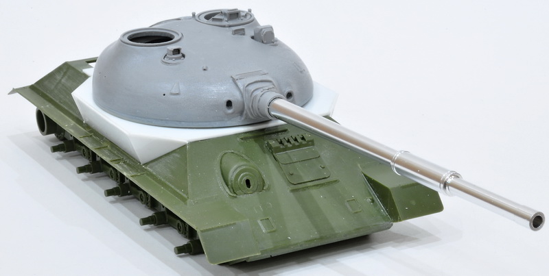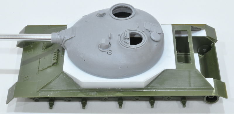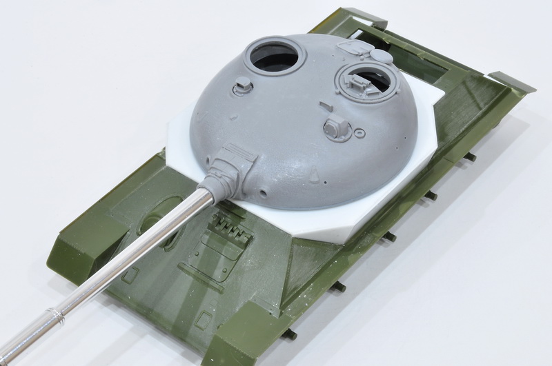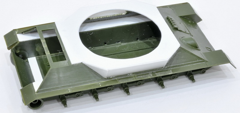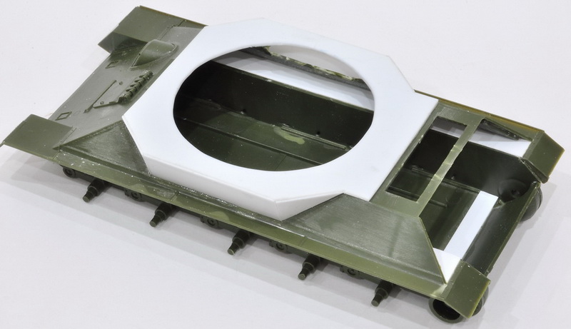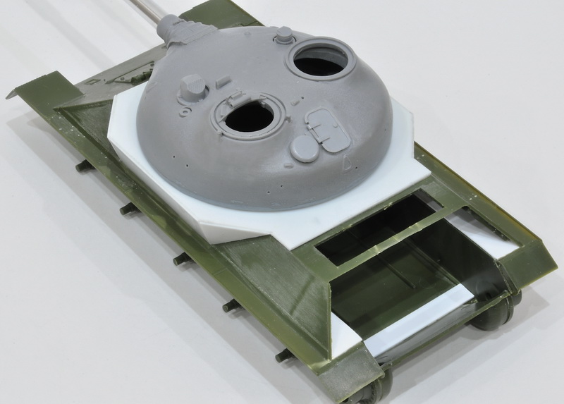 Дальше, измерив башню Т-62, соорудил из листов пластика своеобразный подиум и установил его на корпус Т-34.