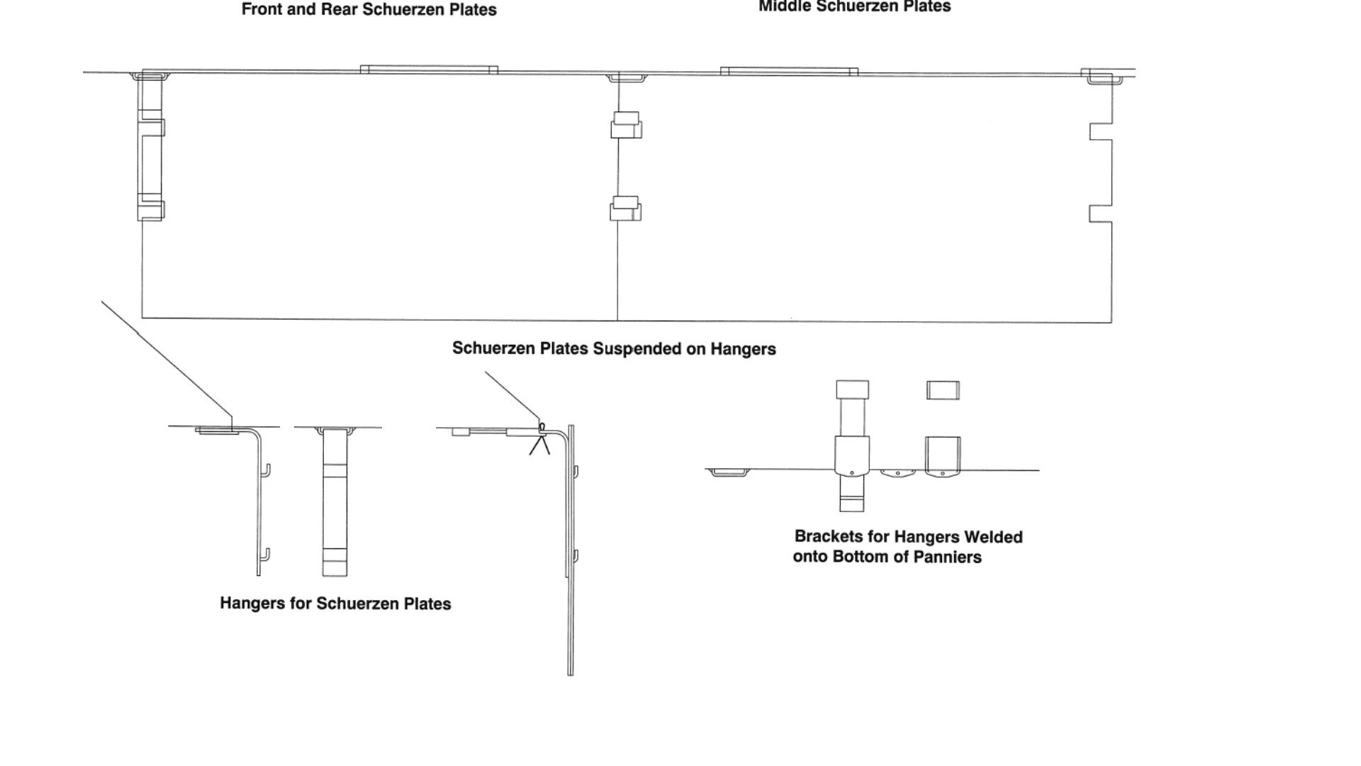 Приваривались основания для держателей экранов. Это по-сути были П-обраные пазы для установки изогнутой Г-образной пластины с крюками для навески экранов, которая в них вдвигалась. У Йентса показано что через отверстие П-образной пластины шплинтовались. Не готов прокомментировать, мне кажется - проще прикрутить... Ну хотя можно конечно и проволоку вставить и что угодно.