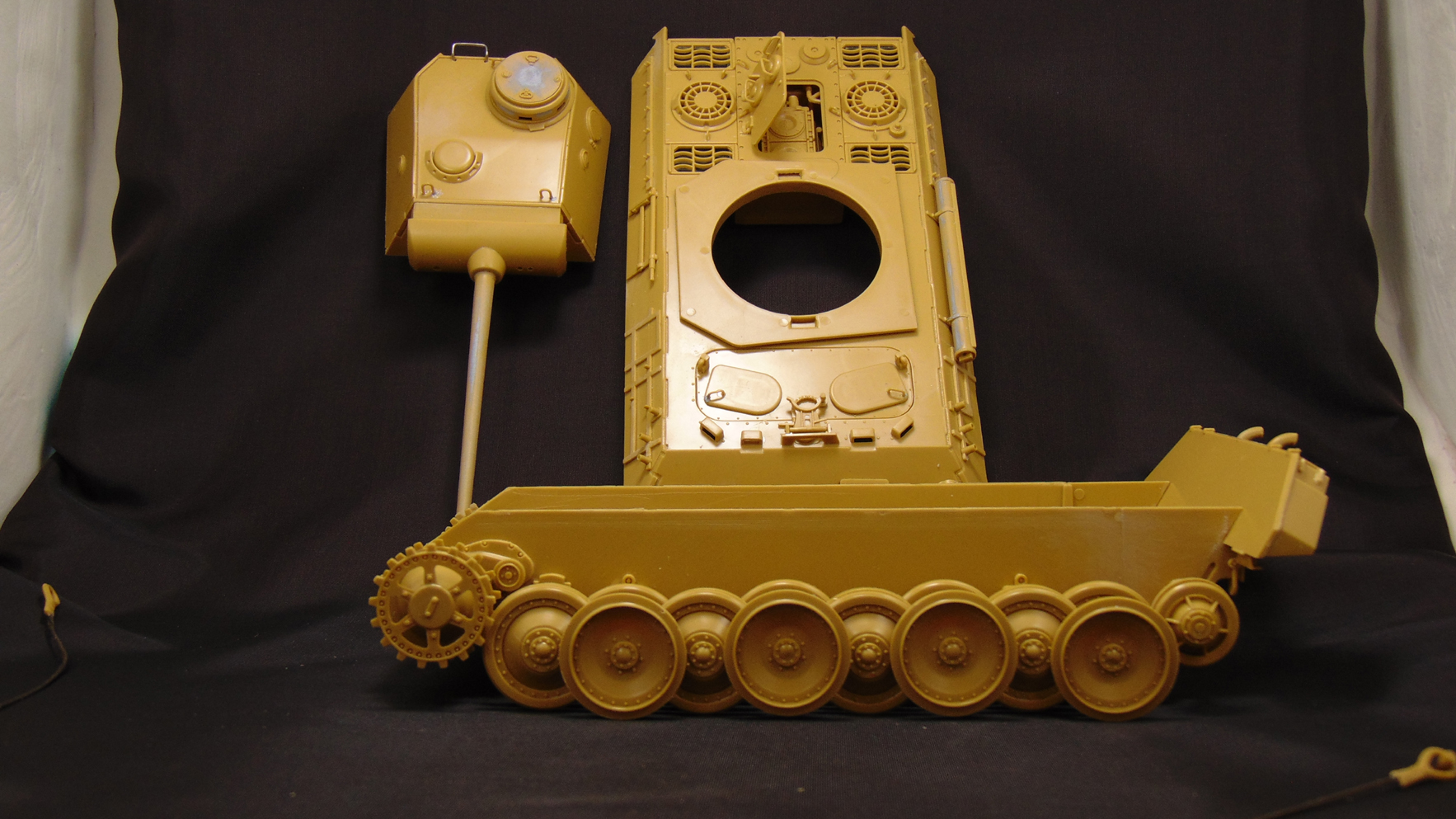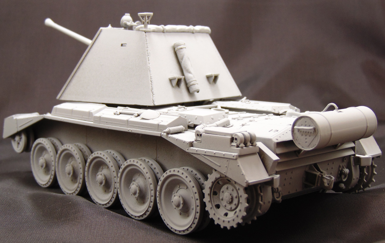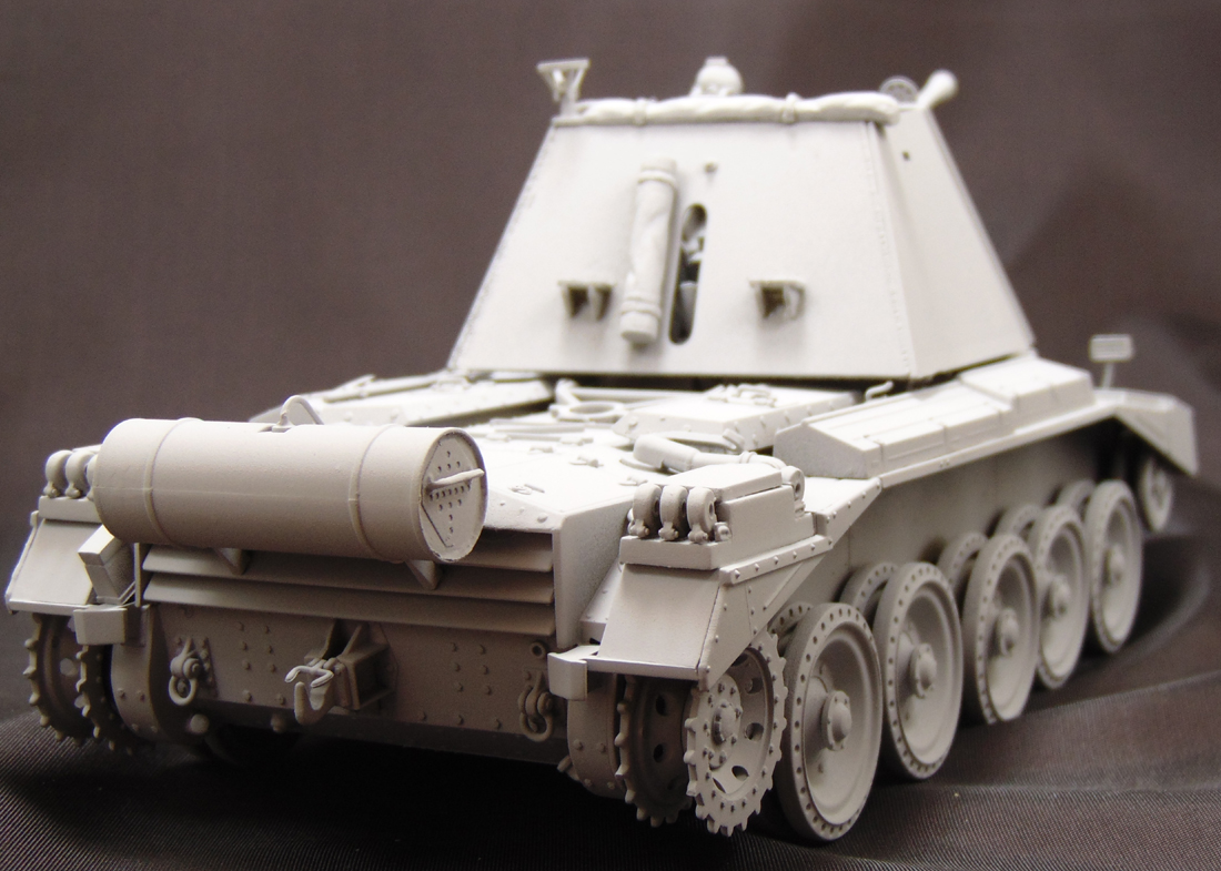 На башне в не зависимости от серии надо перенести выше амбразуру пулемёта. Доработать раскрой лобовой детали, и... лобовая деталь башни - была литой. Т.е. сама передняя часть башни и выступающие скулы, перед которыми маска пушки - это всё одна деталь. Вентилятор тут у Вас позднего типа, надо под ранний переделать.