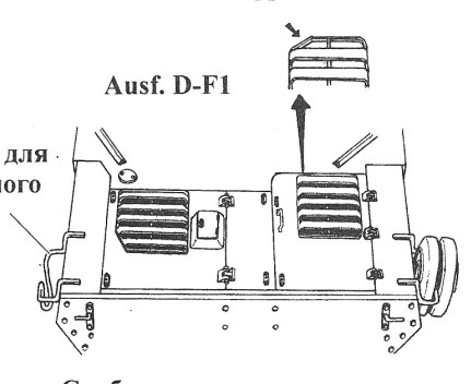 Отличаются, это понятно. Изначально левая была с треугольным скосом, потом обе стали прямоугольные. Появились они впервые на поздних D. Вот пара фото, D и Е. На одном видно, что при открытой крышке бронеплита ровная, без выступов, на втором - четко видно, что решетки тоже над бортиком не выступают. Было бы очень странным предполагать, что сначала решетки были без выступов, потом внезапно их стали делать выступающими, а потом опять не выступающими.