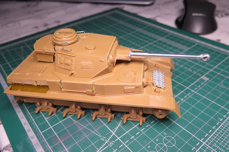 Интересная стройка, как для меня, теперь уже редкой модели. Я бы посоветовал доработать механизм натяжения гусениц. А то там у звезды монолитные наплывы вместо гаек. Заднюю стенку у башни правили? Не видно на фото.