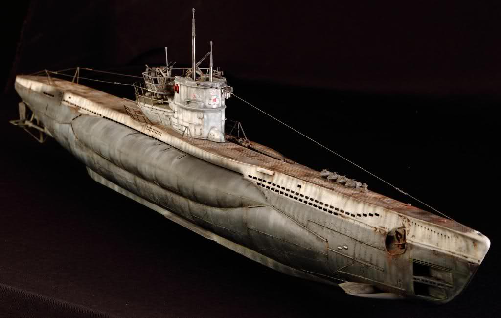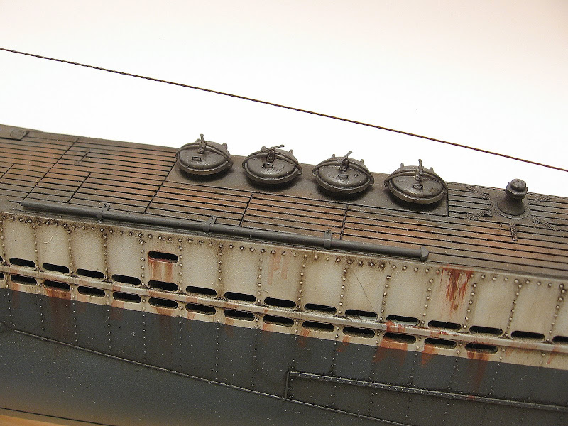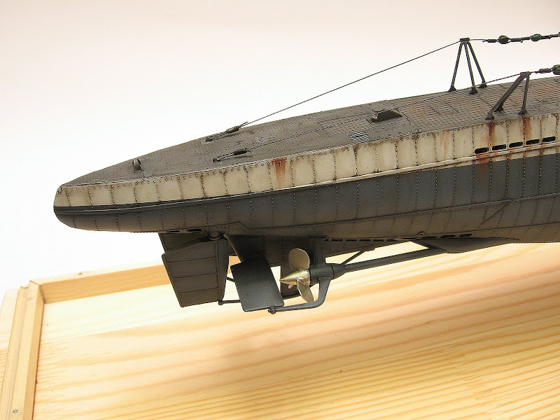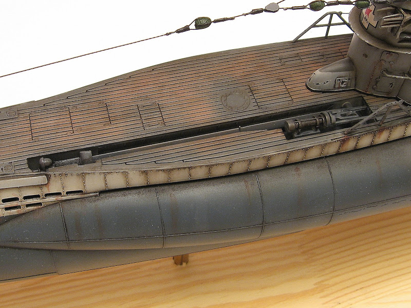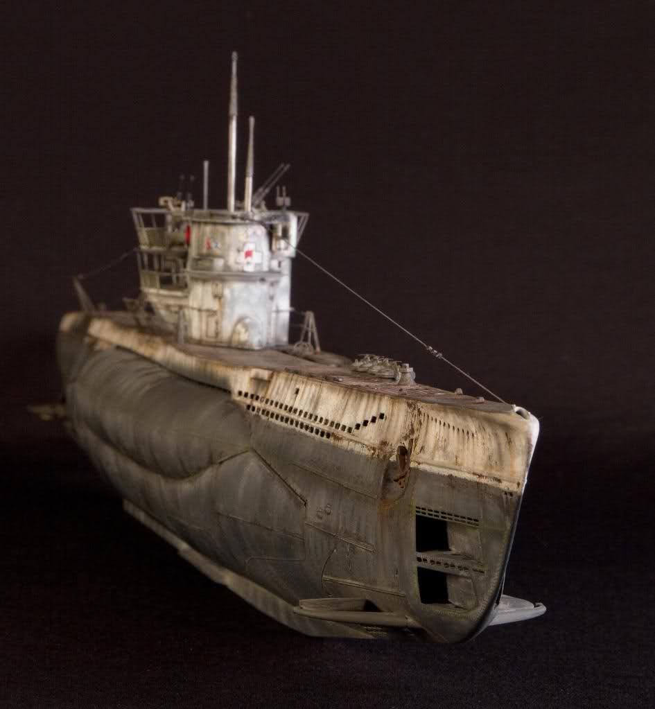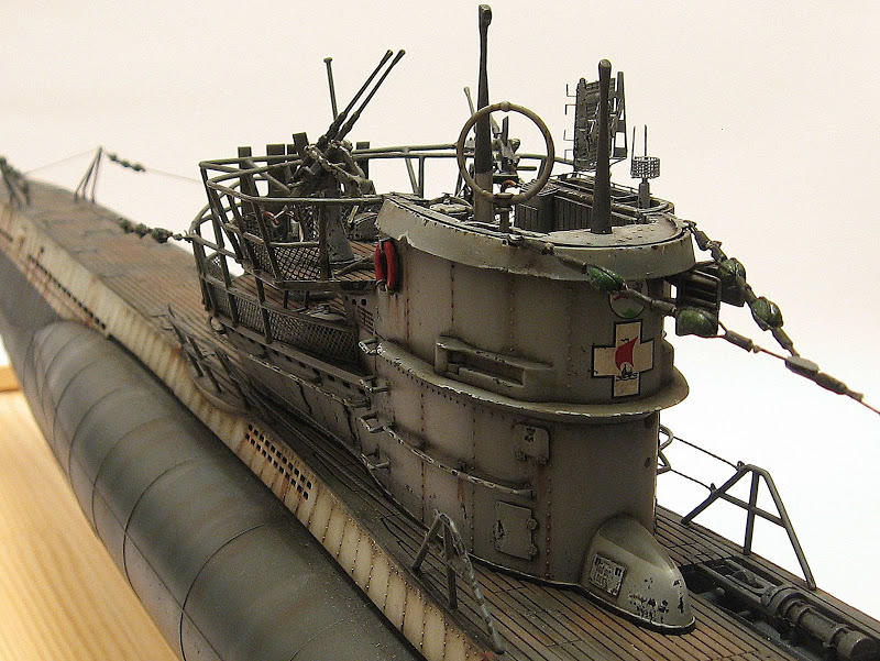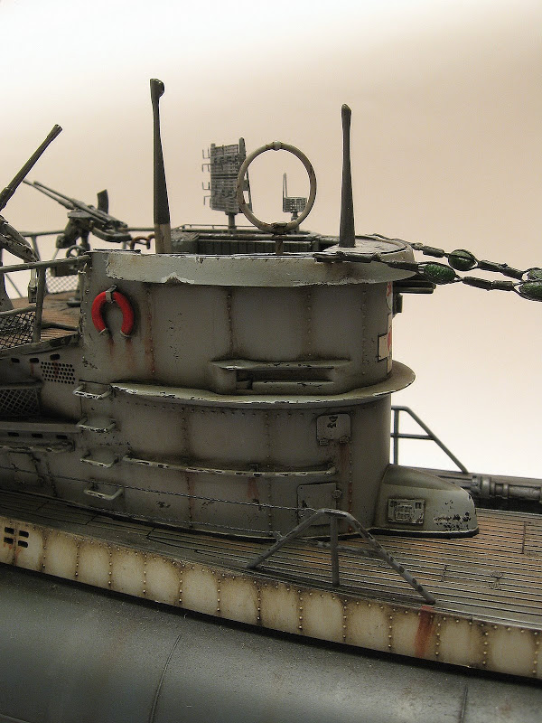 White for hull/conning tower: 5:1 mix Tamiya flat white xf-2, dk sea grey xf-54.