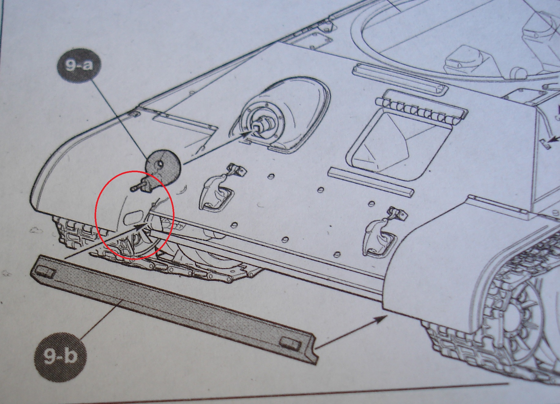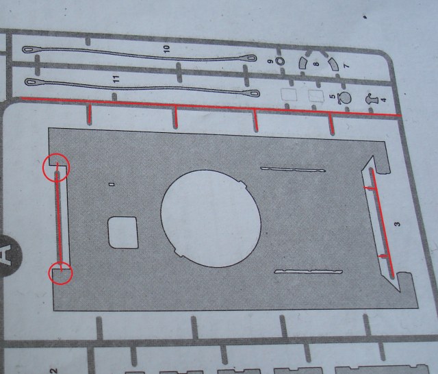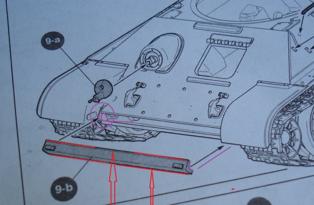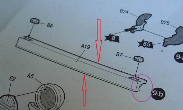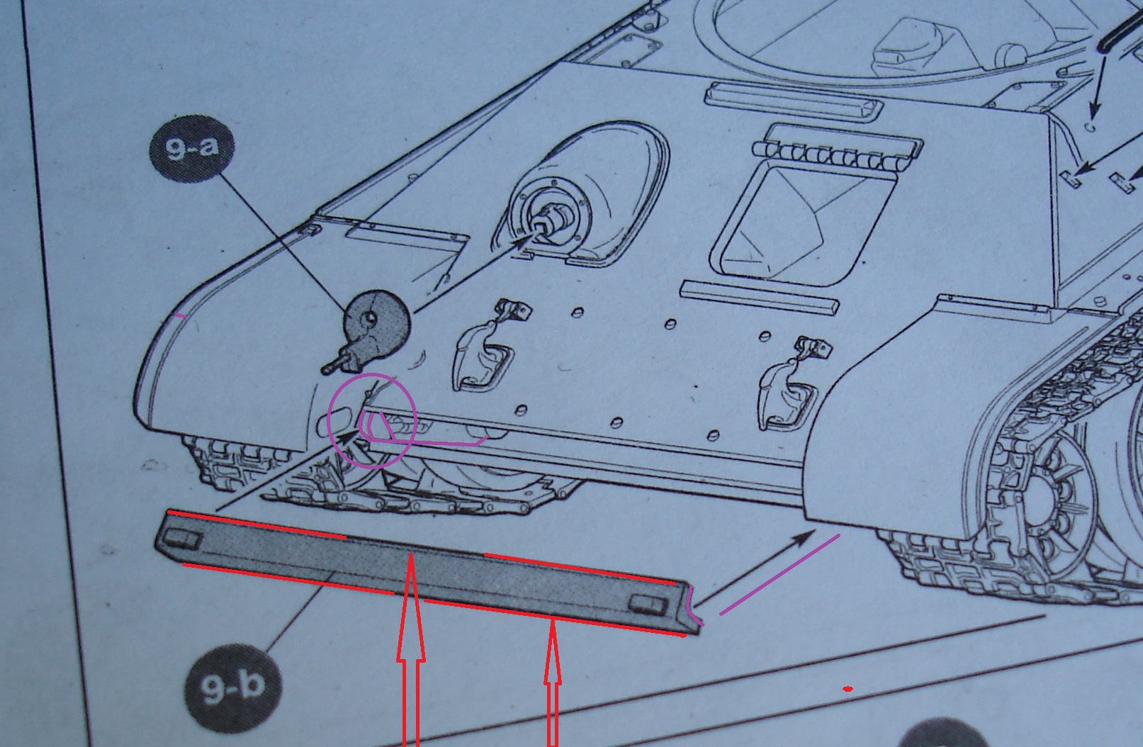 Стрелки показывают где проходит этот ювелирный шов. фиолетовый круг показывает посадочные выемки балки. Встает как литая. Выемки ложатся плотно на деталь боковины. Только вклеивая эту балку обратил внимание, что она не повторяет угол броневых листов. как не пытался, но по другому она не встала. Глянул под увеличением работу Игоря Седых ... Мнение не навязываю, но и там там же история.