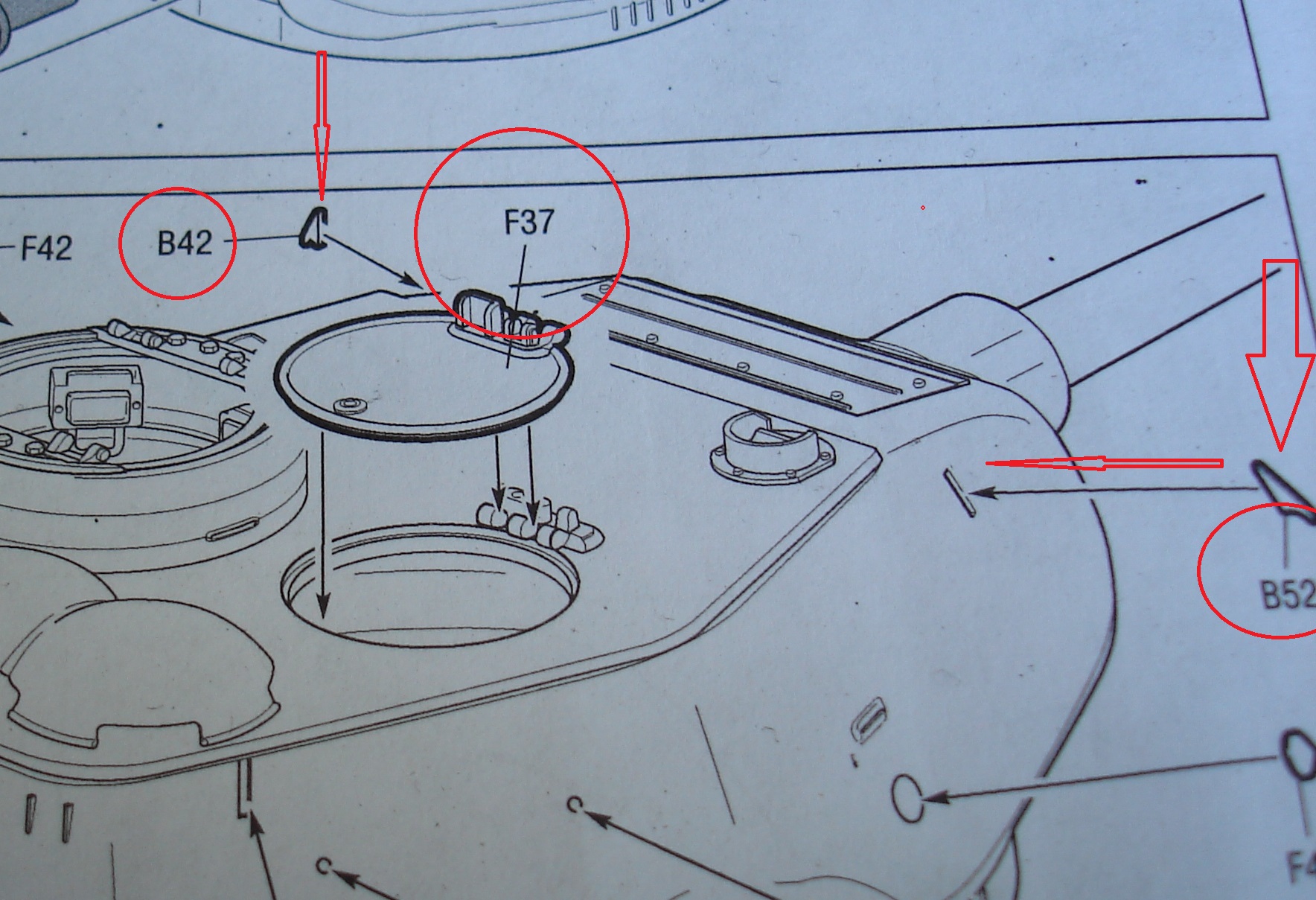 Отделяя верхнюю часть корпуса с литниковой рамки, заметил на крыльях овальные выступы. Срезал , зачистил и разглядывая схему, заметил что они присутствуют на рисунке.