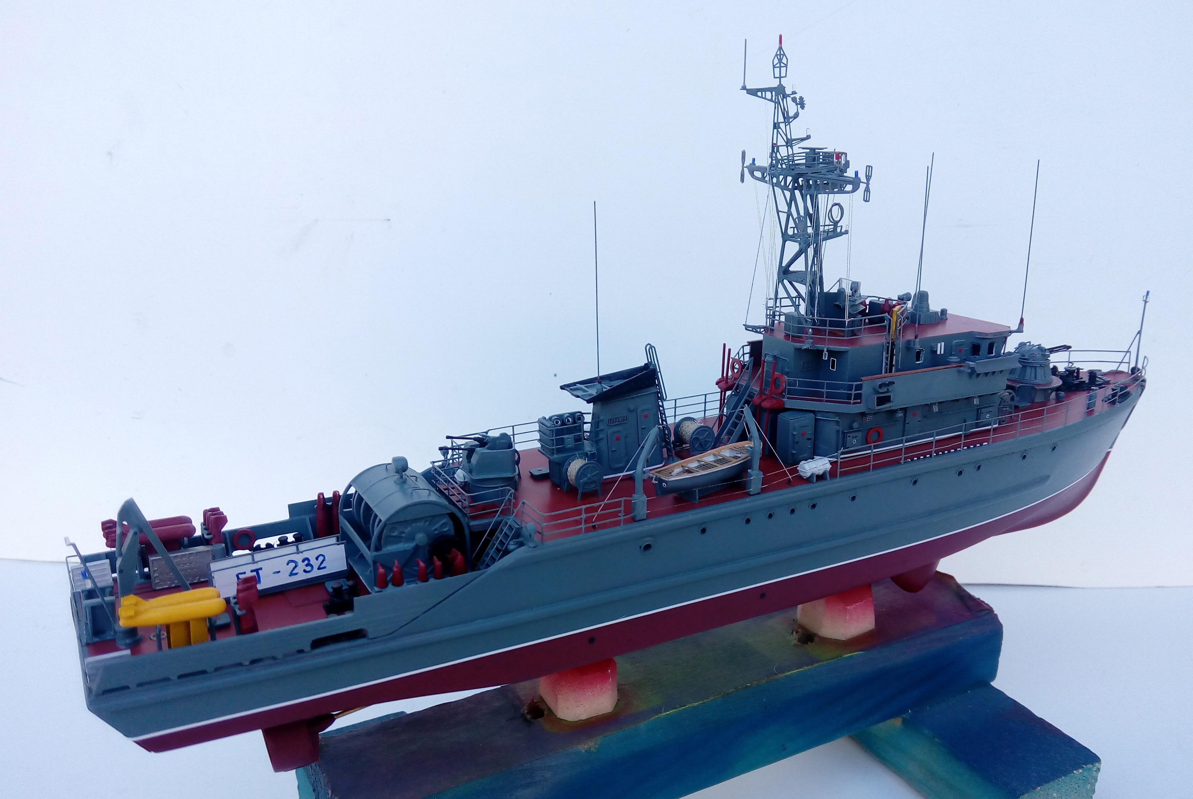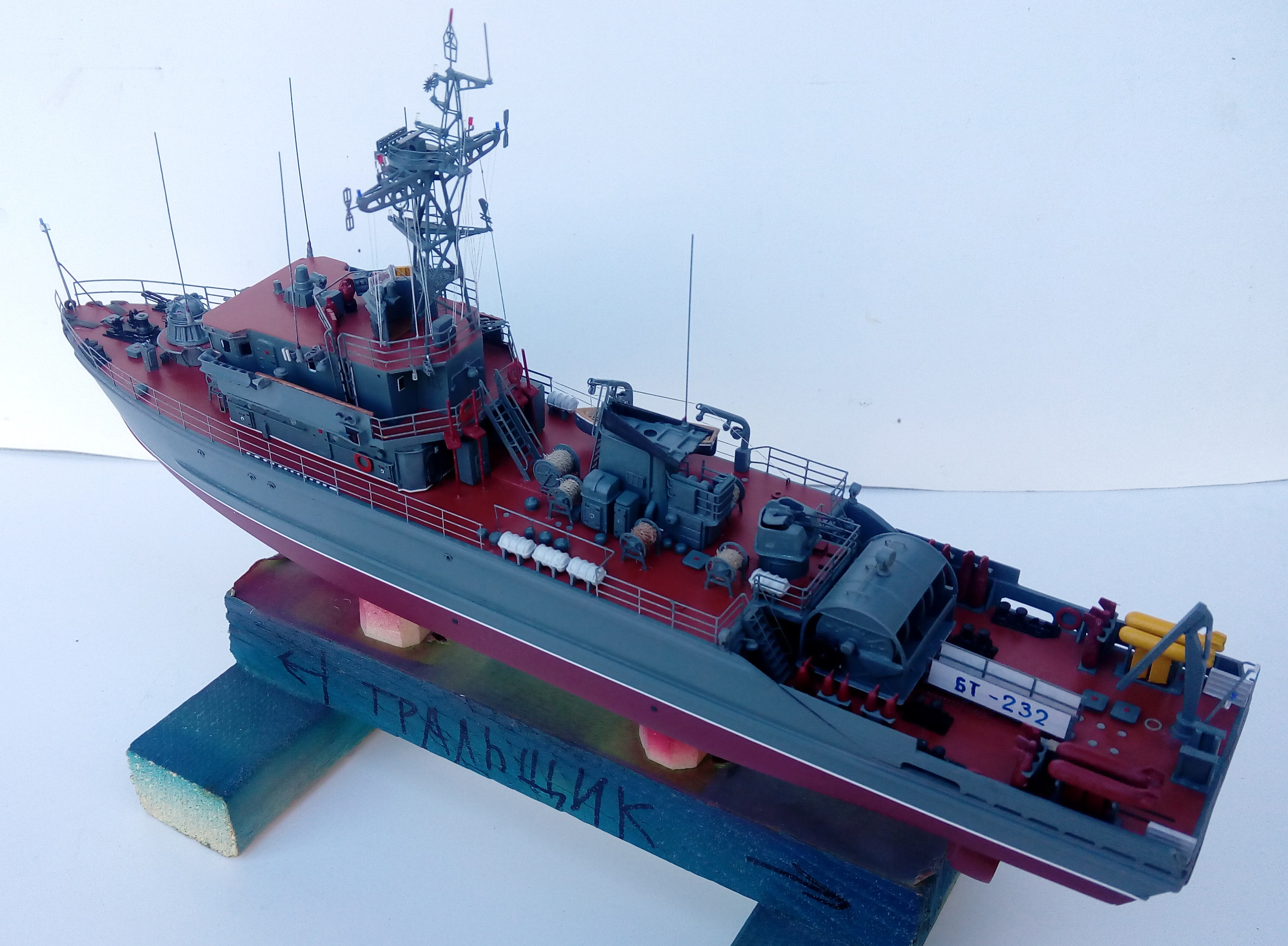 Приветствую! В большом потоке дел работаем также над моделью базового тральщика. Я уже выкладывал аналогичный кораблик, он имеется в галерее: http://karopka.ru/community/user/23195/?MODEL=491888 . Учитывая критику предшественника постараемся сделать красивую модель.