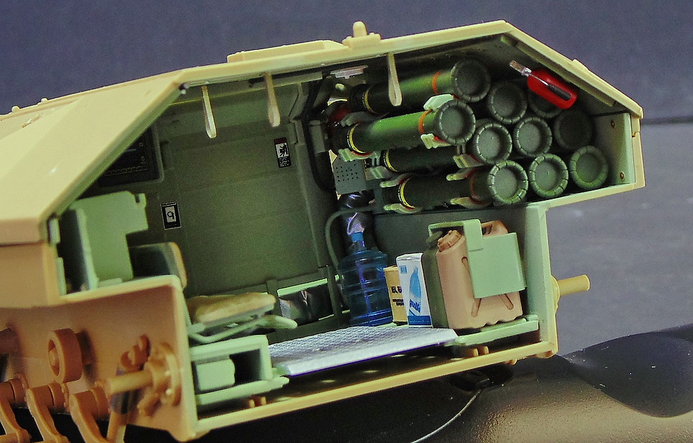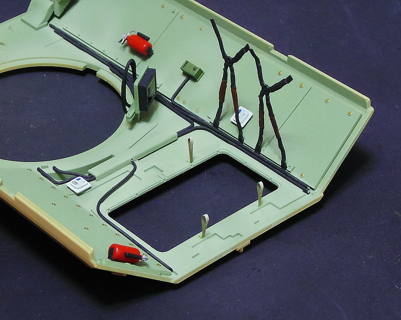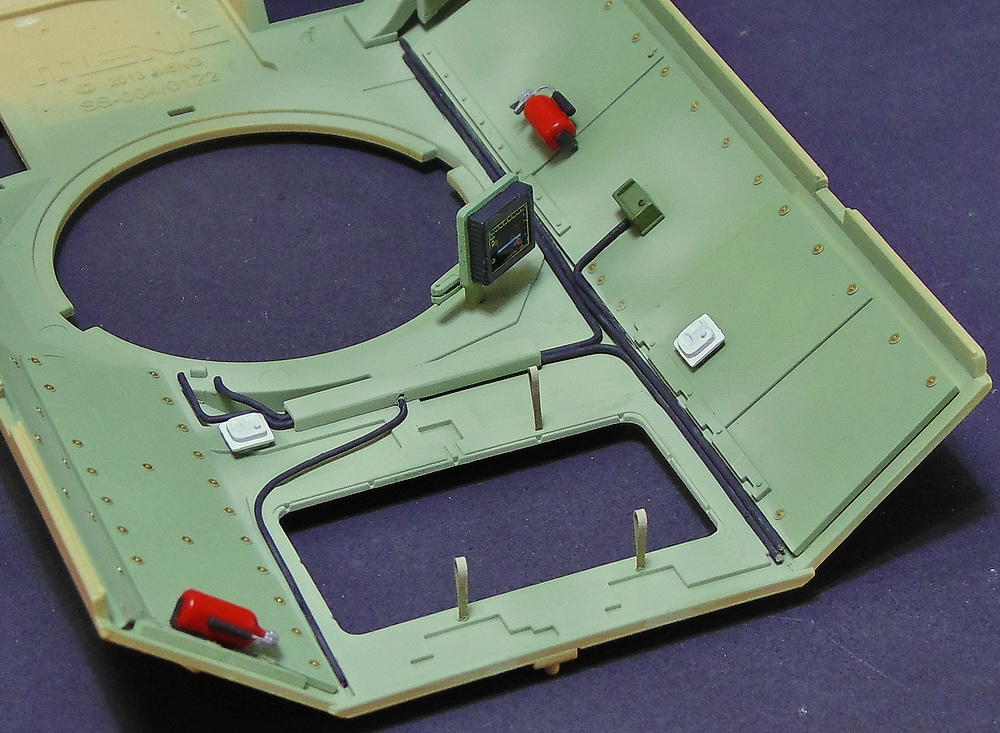Ну и так как остальные люки будут закрыты , полностью собирать интерьер нет смысла , то собрал то - что будет на виду ... Провел проводку , кинул пару коробок и бутыль с водой ...