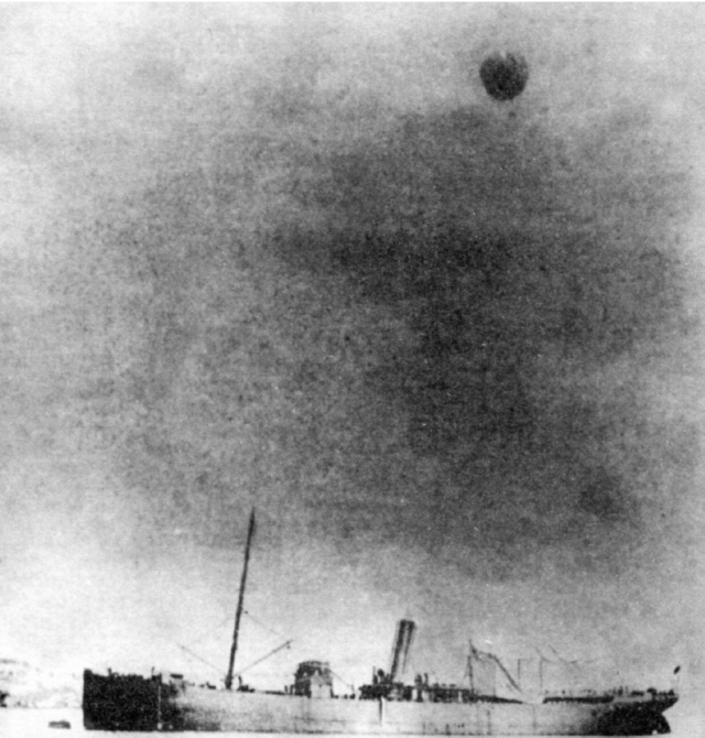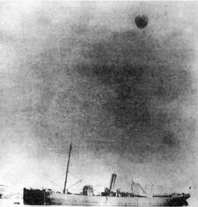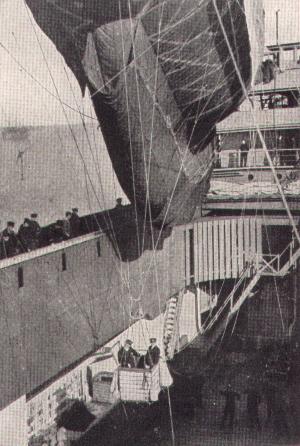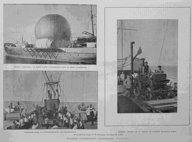 А вот еще один нашелся, аэростатоносец "Колыма". Запуск в свободный полет воздушного шара "Ястреб". Пилот мичман Н.А.Гудим , 1905 год :