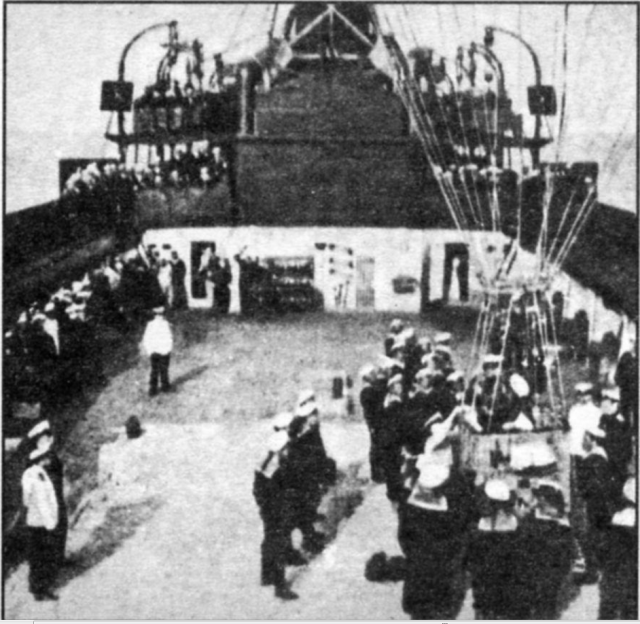Его морской аналог на броненосце. Интересно устройство корзины наблюдателя, спасательный круг со срощенными с ним водонепромокаемыми "штанами" :