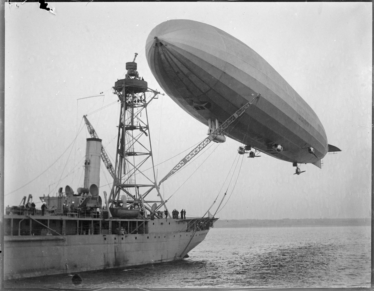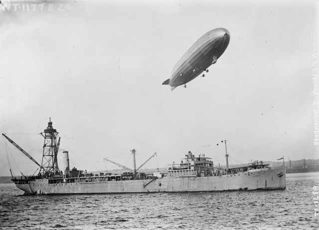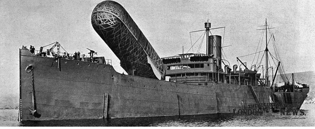 Для обеспечения действий дирижаблей в США был переоборудован танкер в такую вот плавучую базу .