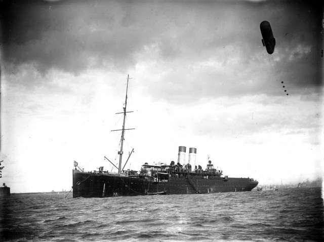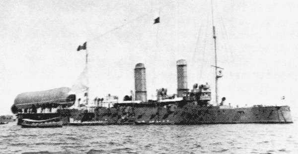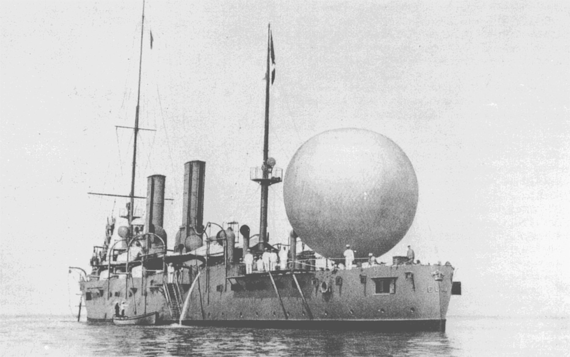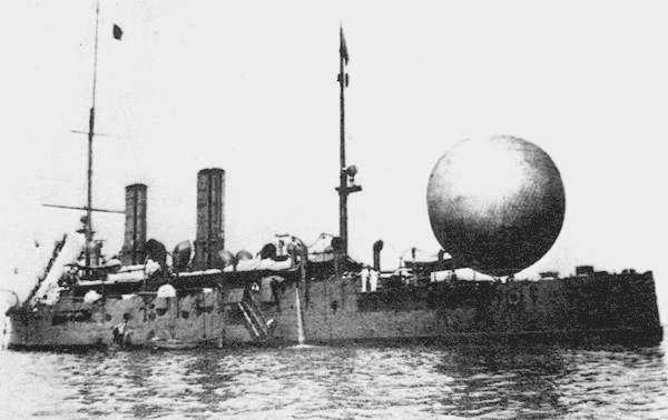 Итальянский крейсер "Liguria". Находился в качестве аэростатоносца с 1908 по 1911 годы :
