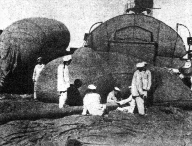 Широко использовались в те годы на флоте и.. воздушные змеи. Назначение опять же для подъема наблюдателей, а так же для подъема радиоантенн.
