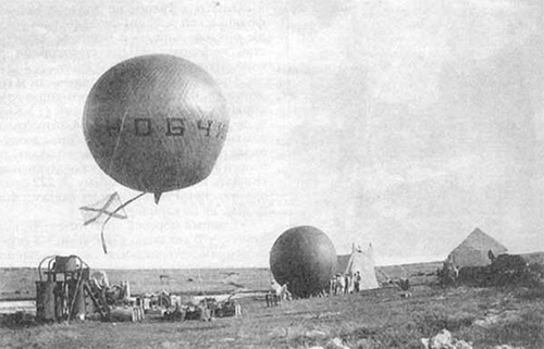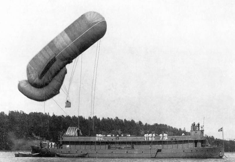 В России морской подъем воздушного шара состоялся с несамоходной шхуны " Самоед" 12 июля 1894 года. "Самоед" принимал участие в розыске пропавшего в Балтийском море броненосца "Русалка". Тогда найти броненосец так и не удалось, он был обнаружен в 2003 году..