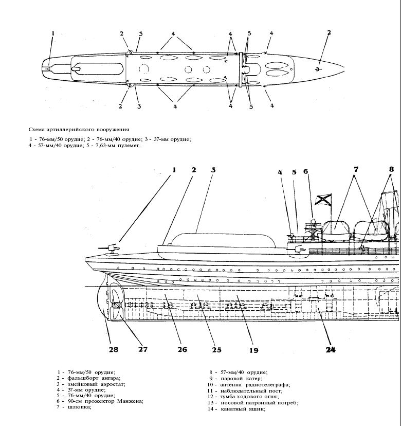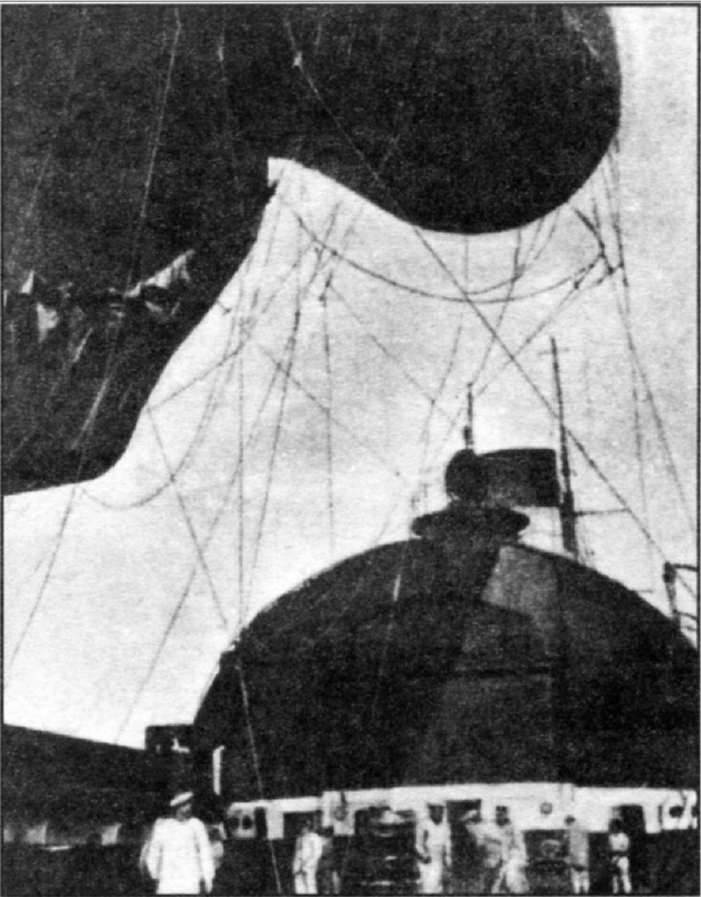 Внушительным было его аэростатное вооружение - Четыре пилотируемых змейковых наблюдательных аэростата системы "парсеваль", объема 715 куб.м