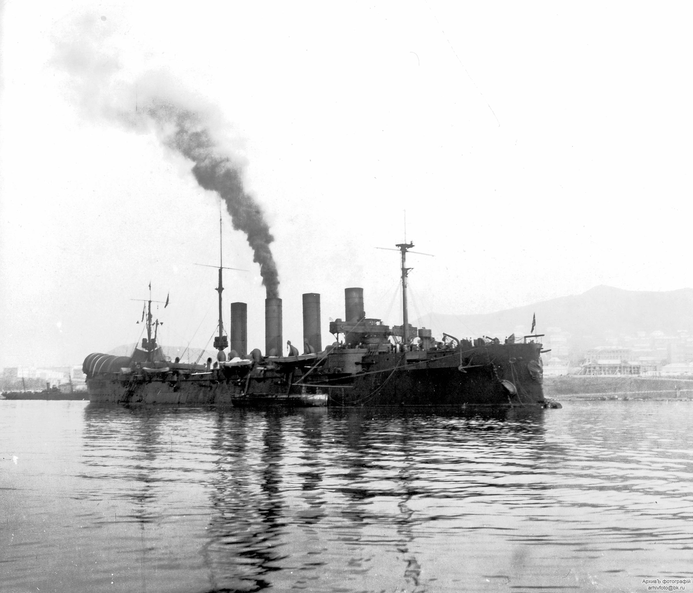 Австро-Венгерский броненосец-аэростатоносец "Budapest" на рейде Пола, 1908 год :