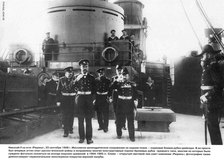 В Греции в Афинах есть корабль-музей Броненосный крейсер «Георгиос Авероф», очень похож внешне на наш "Рюрик-II" Думаю в интернете есть его фотографии, возможно это Вам поможет в стройке.