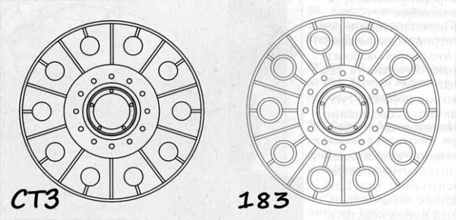 А в звездовском наборе т-34 с минным тралом катки 183 завода?
