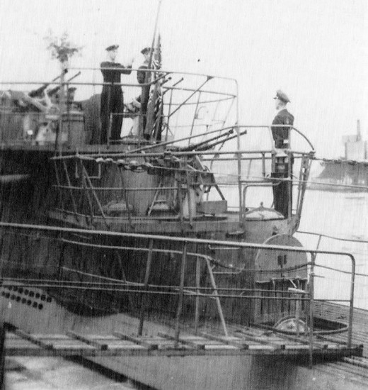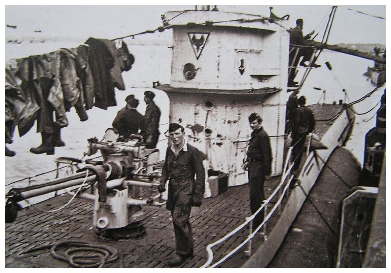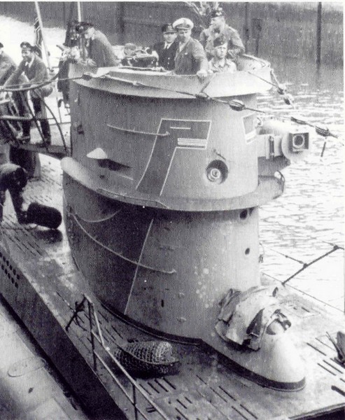 Видимо,зенитный перископ не успели убрать и погнули,когда лодка проходила под каким нибудь кораблём...Но благо на лодке есть ещё командирский перископ. Перископы на немецкие подводные лодки производила компания Carl Zeiss.