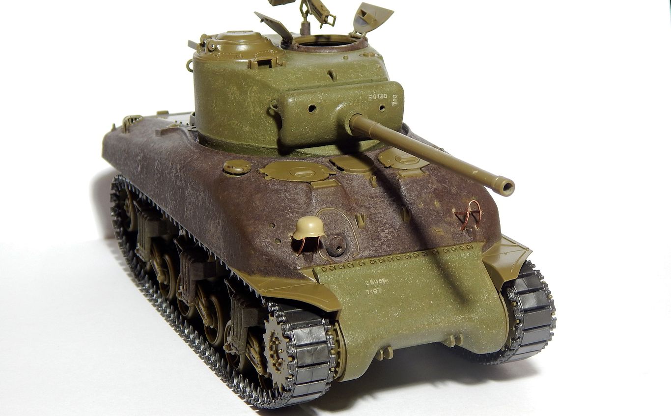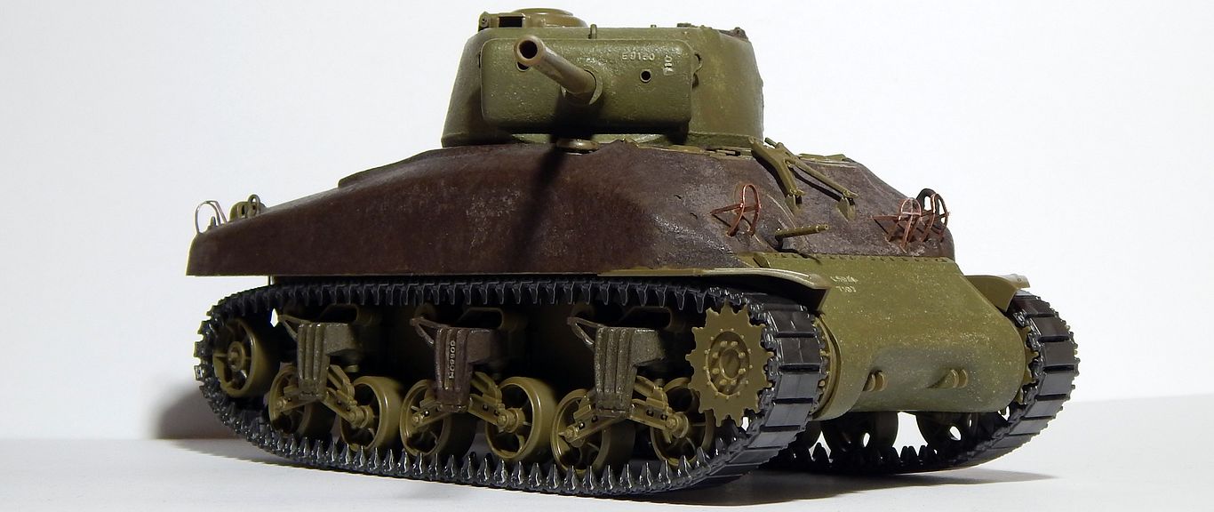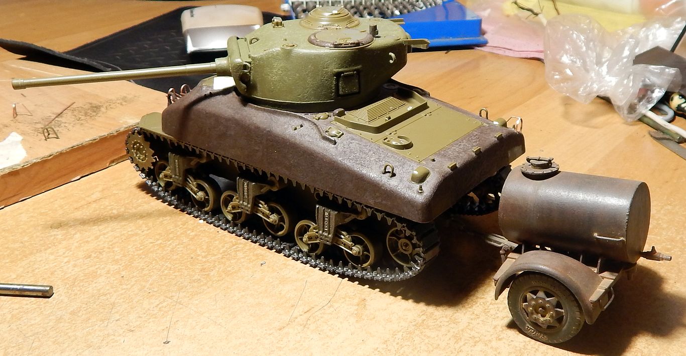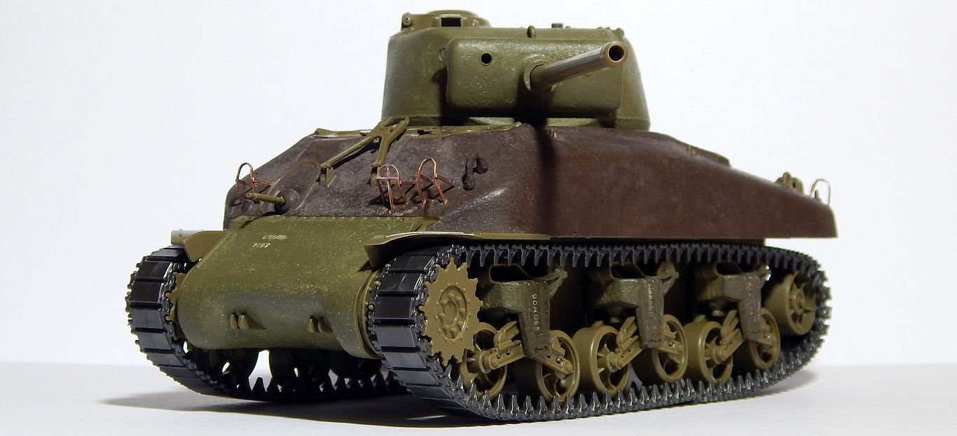 Кстати, небольшое совпадение... Я у своего Шермана ограждение фар тоже менял на самодельные из проволоки. Смотрится намного правдоподобней!