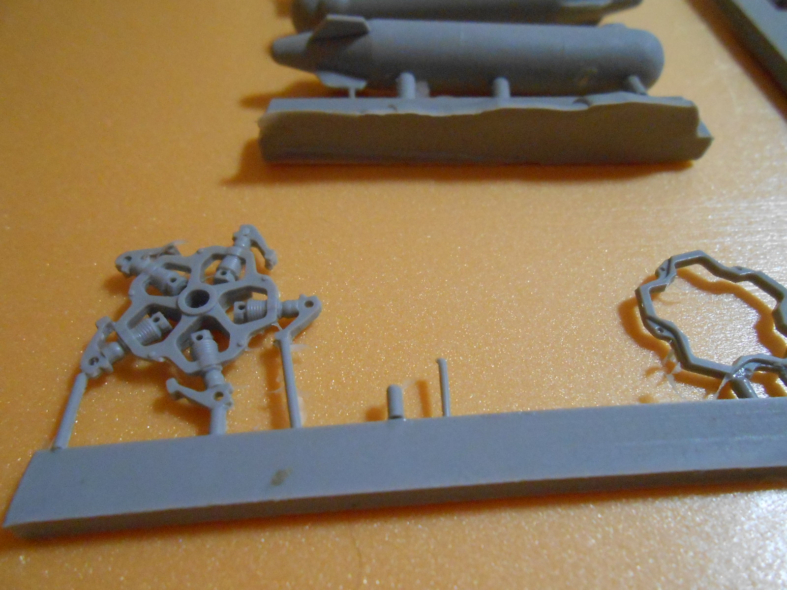 В основе смоляные копии НВ и РВ от Ми-35 Звезда, а также баков от него же+новые законцовки крыльев с блоками ловушек и воздухозаборники и антенны на двигательный отсек+декали.