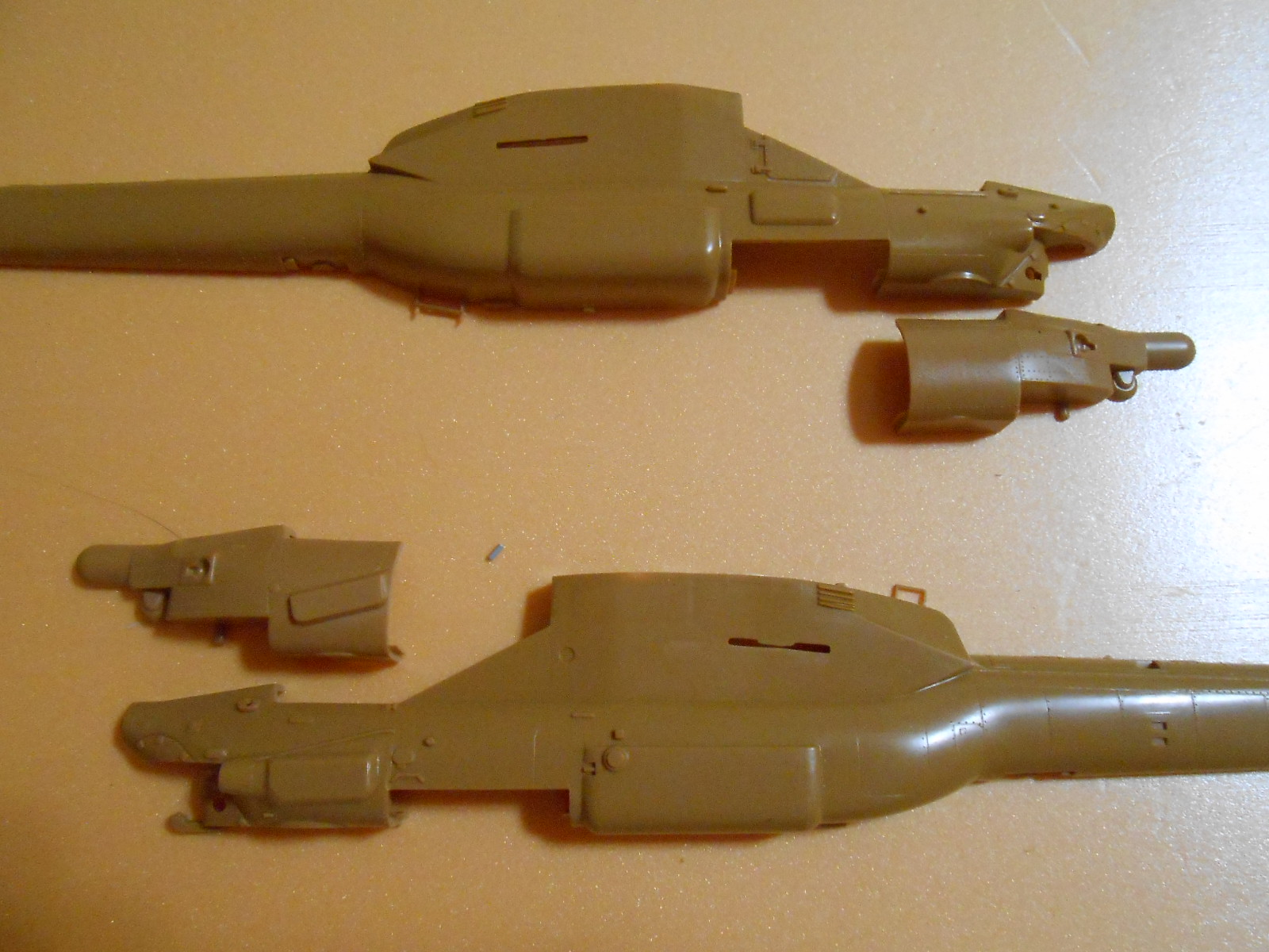 Рядом с Драгоновским фюзеляжем Ми-28А лежит Звездинский нос Ми-28НЭ. Дорабатывать конечно придется. Сейчас распилил фонарь, чтоб сделать кабину открытой. Готовлюсь вскрыть левую половину фюжеляжа - открыть отсек.
