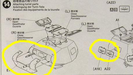 По инструкции надо на любую модификацию наклеить дополнительную броню на башню и лоб. Вообще С отличается от А и В только отсутствием дымовых гранат на попе и другими форточками. (картинка вторая)