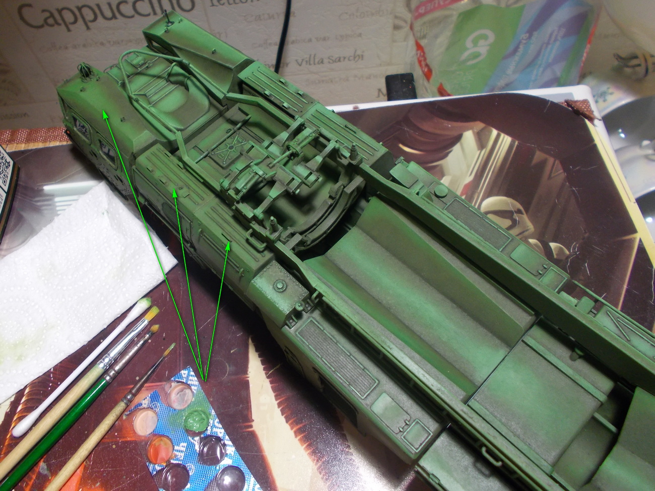 Далее - нанесение 2го высветления панелей и всякой мелочи типа клёпки или граней