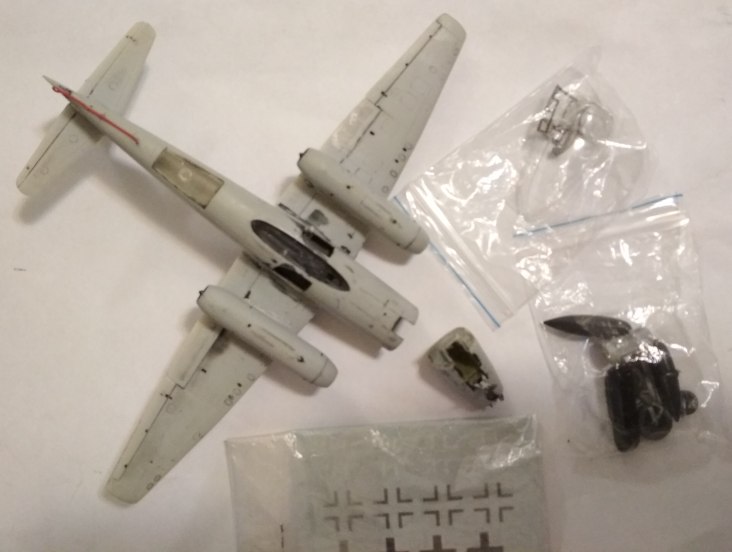 Изначально, набор представлял собой модель ночного истребителя, но пластик идентичен с бомбардировочным, разве, что бомбы там нет в комплекте, но это не трудно и исправить, найдем, у кого ее перевесить.