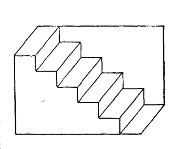 "оборачивающаяся" лестница, которая кажется то лестницей, то ступенчатым нависающим сводом.