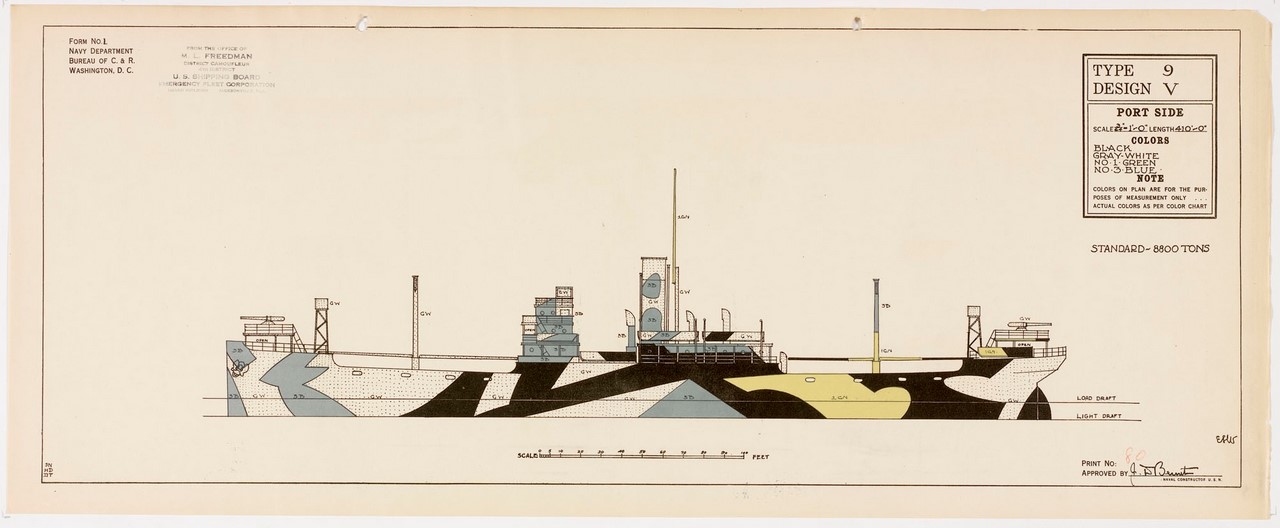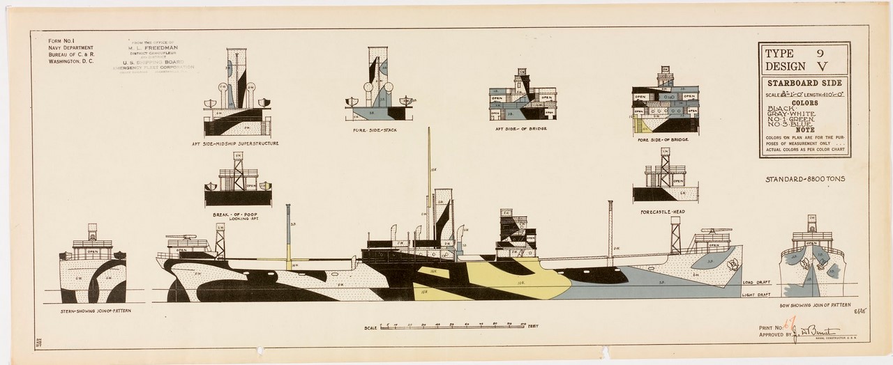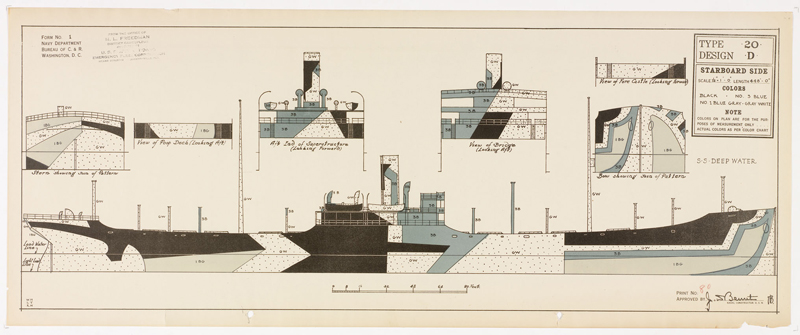 Вот еще, некоторые основополагающие моменты при нанесении искажающего камуфляжа на корабль: