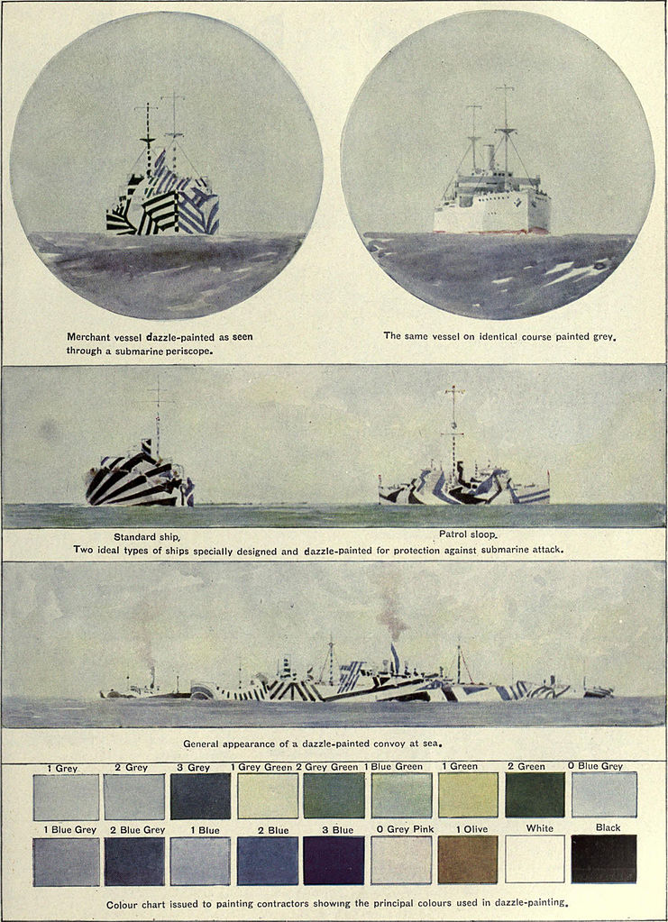Благодаря знаниям всех этих и других иллюзорных эффектов (искажение перспектив, цветовые искажения), Норман Уилкинсон и разработал свой искажающий камуфляж.