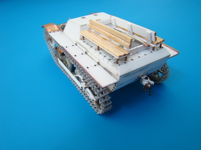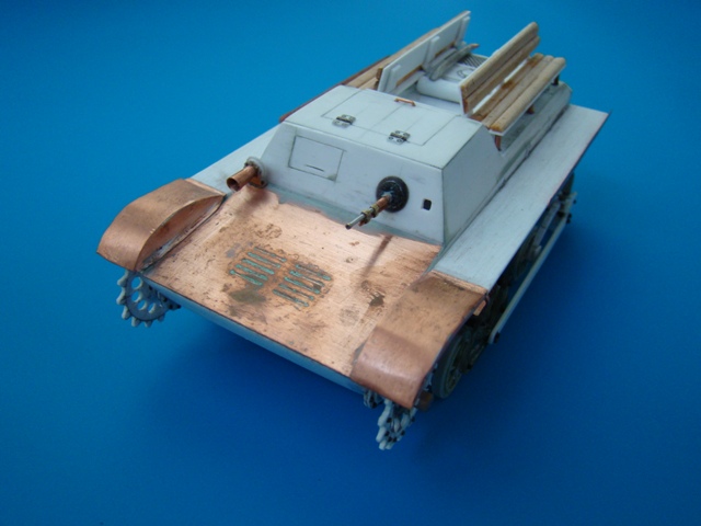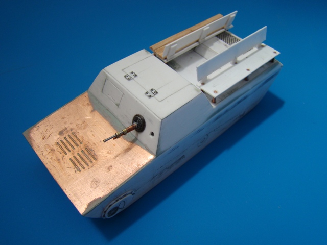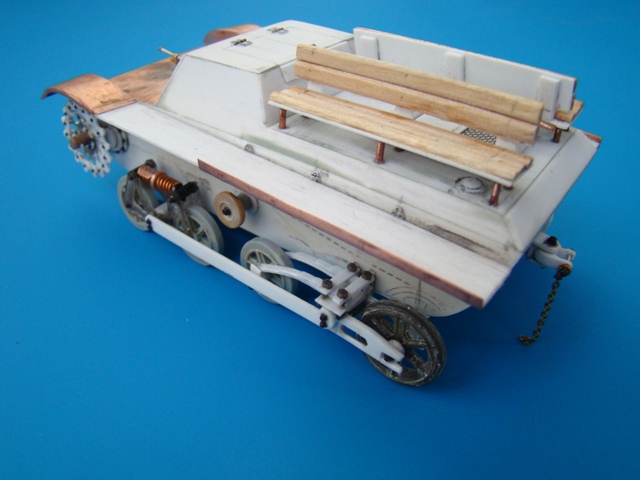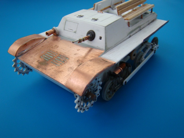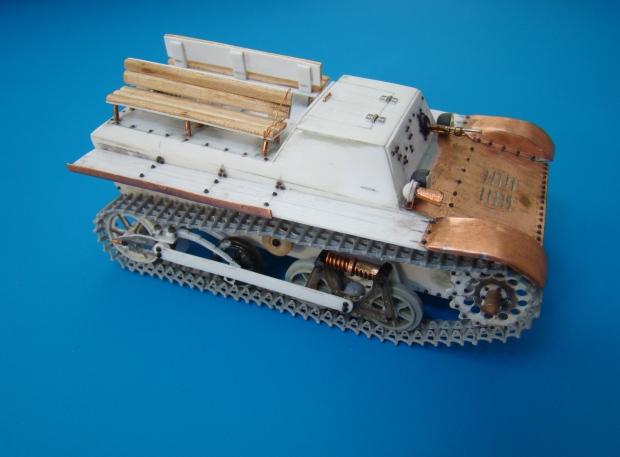 Сделал ходовую, звуковой сигнализатор, выхлопную трубу, редукторы звёздочек, надгусеничные полки и буксировочное крепление.