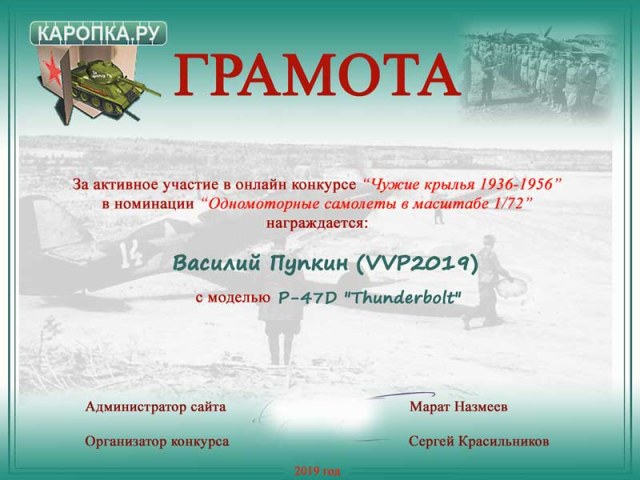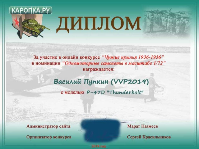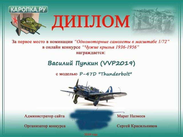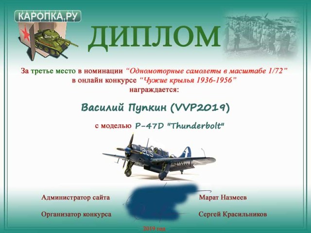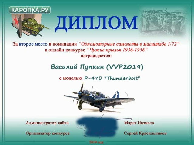 @Сергей Красильников написал:Кстати, тут при обсуждении темы по ГБ "Техника Победы" мелькнула фраза, что в дипломе вроде как указывать средний балл, который набрала модель...