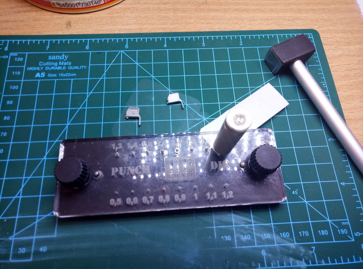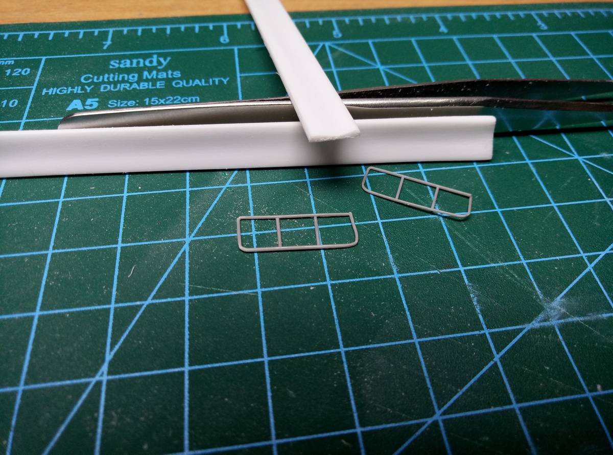 Так как грузовой отсек хоббибосс дает полностью пустой, а дверь у моделии будет открыта, пришлось самому сделать сиденья. Сначала попробовал спаять из проволоки, но результат и трудозатраты не понравились. Остановился на тянутом литнике и полосках пластика, выточенных по профилю сиденья.