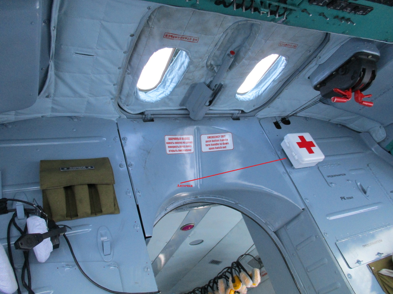 Аптечки в последнее время стали редкостью на МИ-8. Одну можно иногда встретить над сидением КВС, а чтобы 2 !!! тем более спрятанную за местом второго пилота... )))