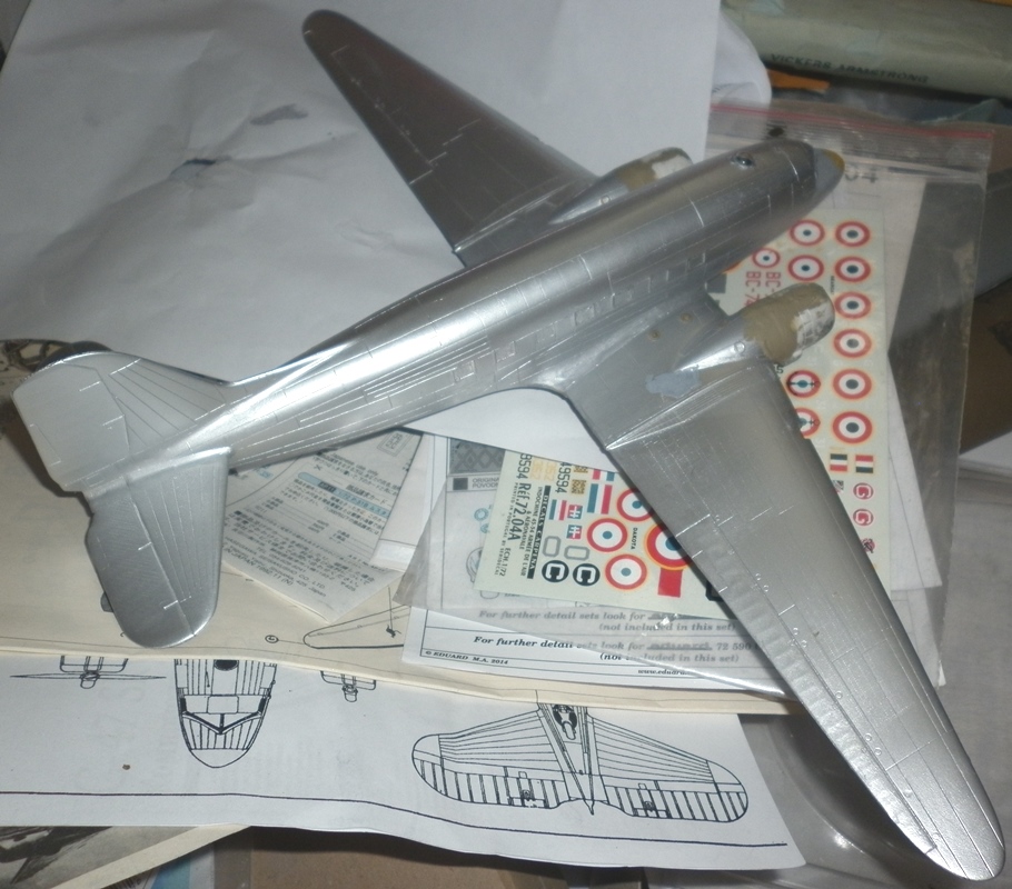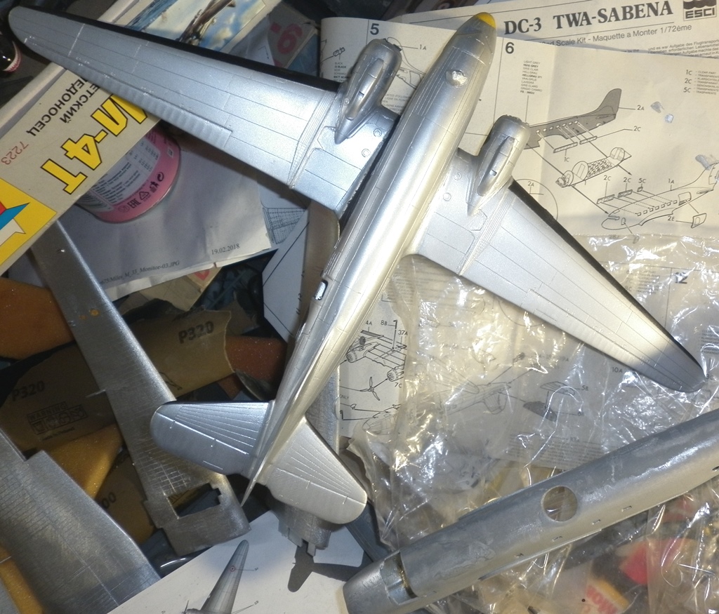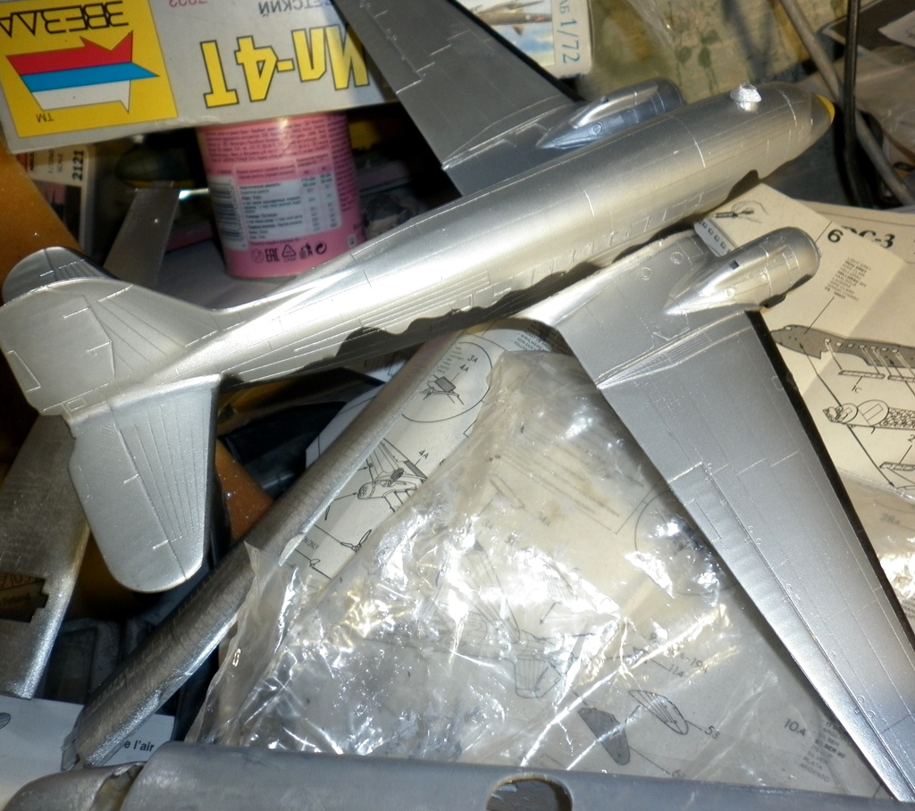 Всю травленку истратил. Планер, в основном, собран. Очередной слой серебрянки для выяления дефектов. Шпатлевка дефектов. Устраню - буду красить . Вариант выбрал.