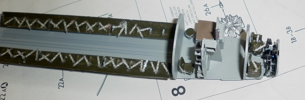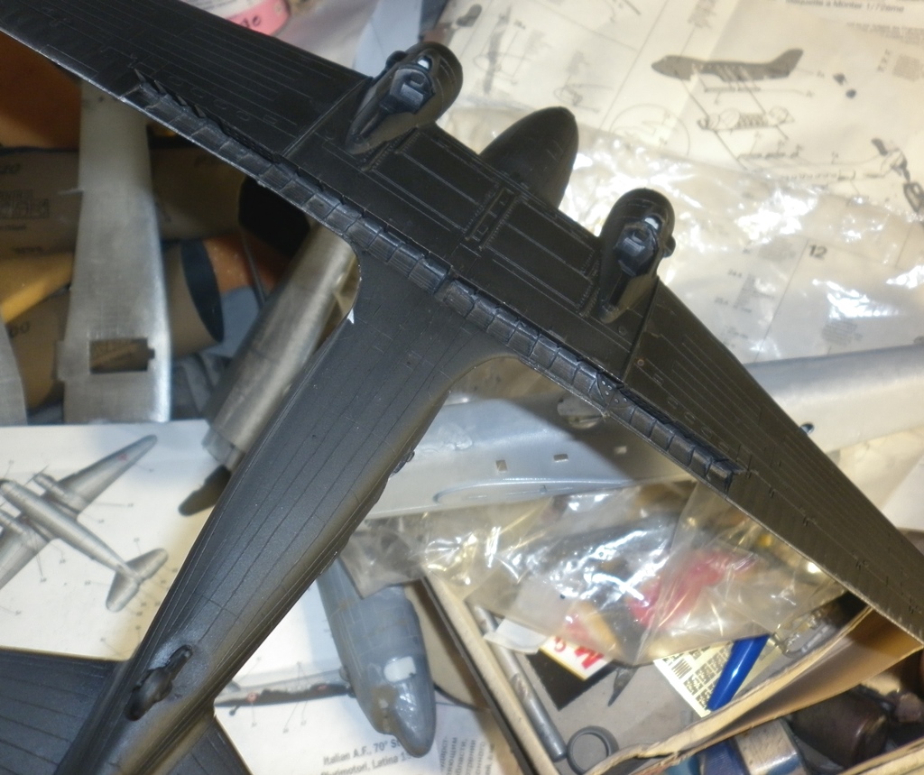 Процесс продолжается. Покрасил основу. Далее исправление дефектов окраски и нанесение противобликовой и противоскользящих полос. Есть вопрос к знатокам - какого цвета должны быть ниши и стойки шасси и внутренности щитков при черной нижней поверхности крыла7