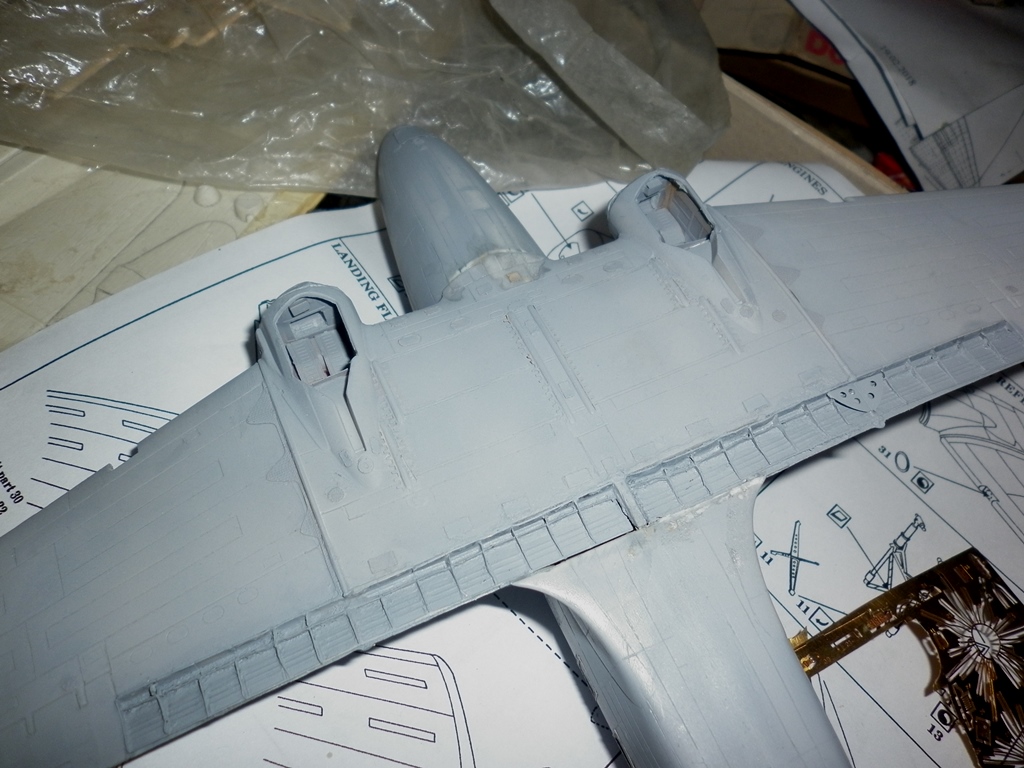 Вчера обклеил крыло травленкой. Уже заметнее . Но если эти же лючки выделить кроем - получилось бы не хуже. Сейчас делаю посадочные щитки. Нудно. Будет ли эффектнее по сравнению с родными - не знаю...