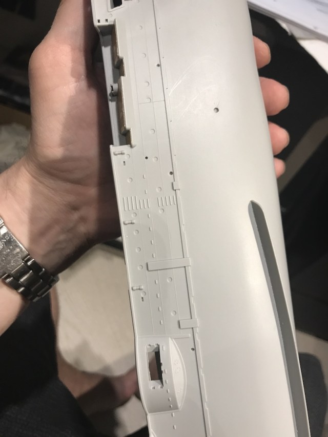 @Владимир62 написал:Еще скобтрапы по бортам наверное стоило бы переделать. Пластиковые полосочки на модели их изображающие даже в 350 масштабе не смотрятся, а уж в 200...