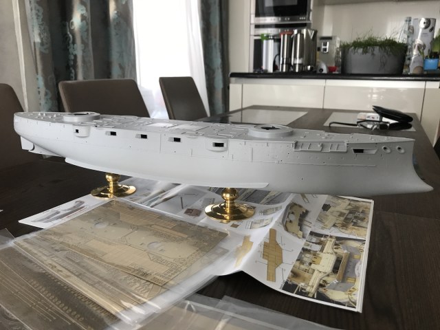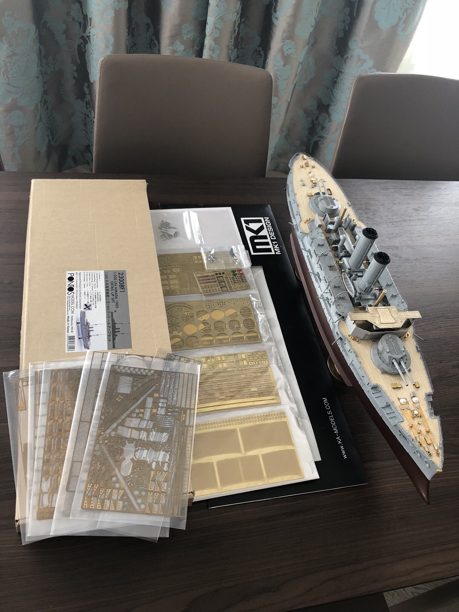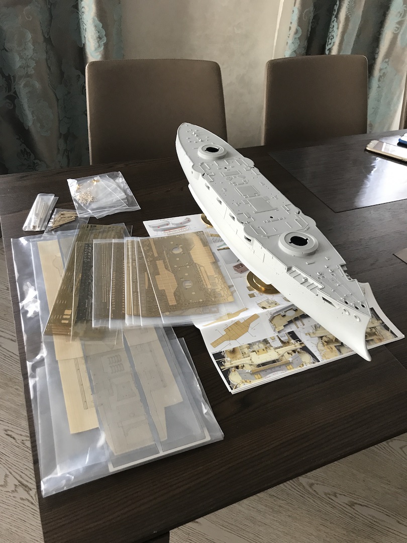 Вот на том этапе, что вы видели на моих последних фото еще одни корейские ребята выдали на гора свой набор травления. Называются они KA MODELS. Выпустили они 2 набора, один полный другой только с травлом. Наборы интересные, но это не 1905 год и все же не такие подробные как у PONTOS. Но по нескорым моментам их детали оказались более точными и проработанными, например кильблоки под шлюпки, леера рубок, рубки катеров, козырьки и двери бортов надстроек (чего у PONTOS вообще нет) и многое другое. Там оказалась дивная пластина крашенного трава с часами, сигнальными флажками, спасательными кругами и семафорами (могу ошибаться в названии, но увидите и поправите меня если что)